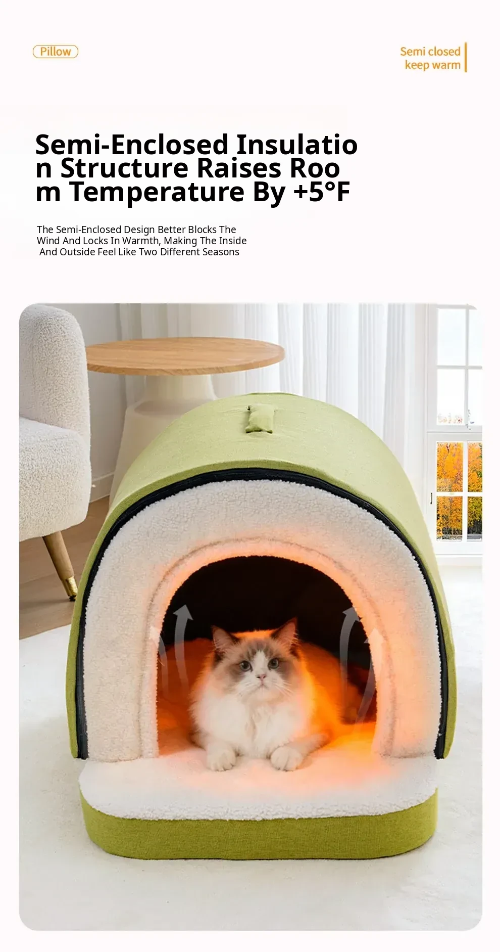 2025 New Thickened Closed Cat Bed - Cozy and Secure Half-Closed Design for All Seasons, Removable and Washable Small Nest for Ultimate Comfort