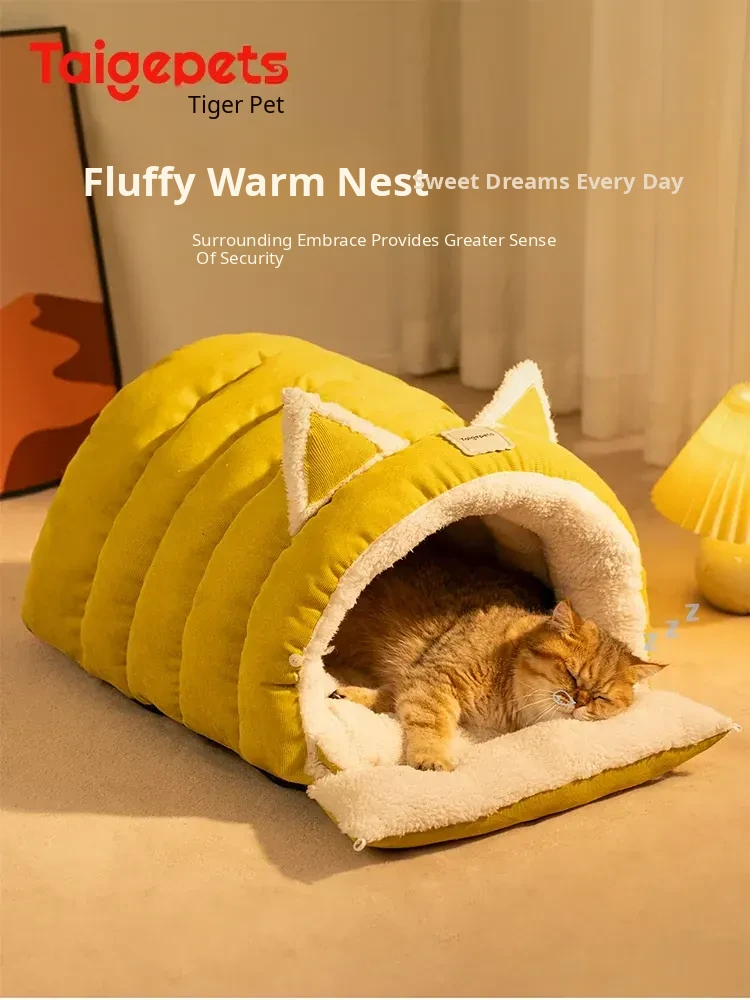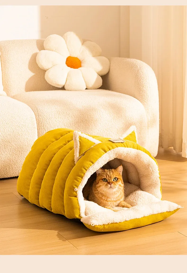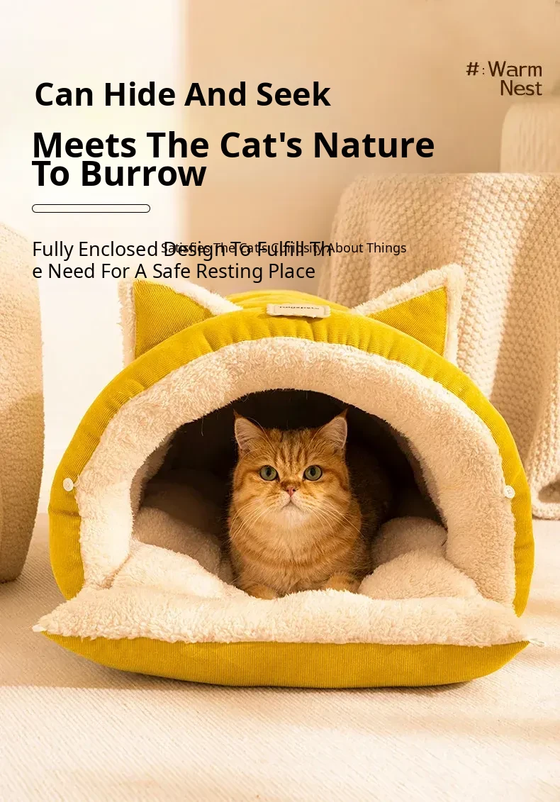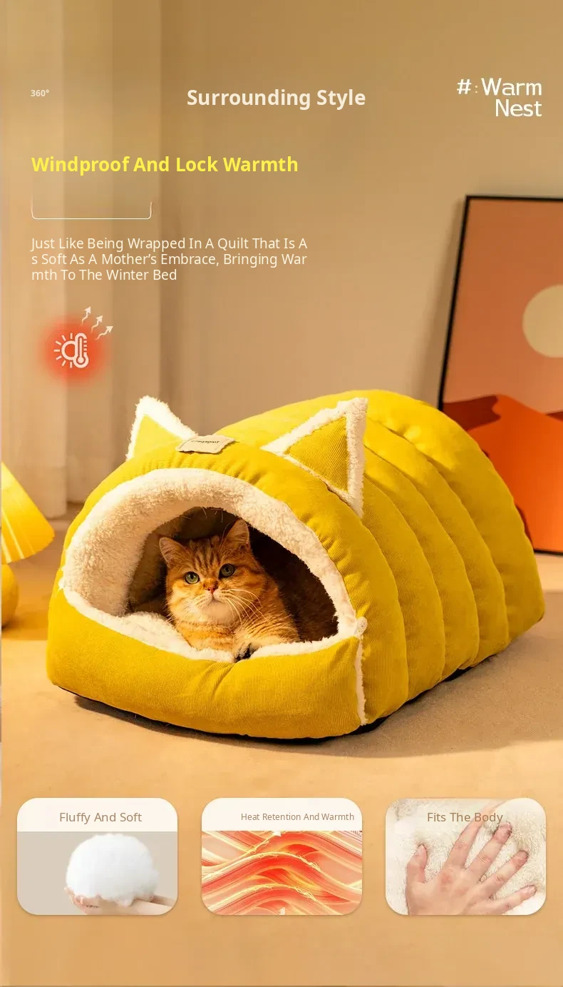 2025 New Thickened Warm Enclosed Cat Bed - Safe Winter Hideaway for Cats and Dogs, Perfect Sleeping Bag for Cold Days