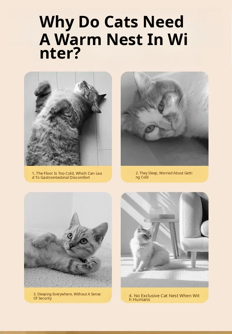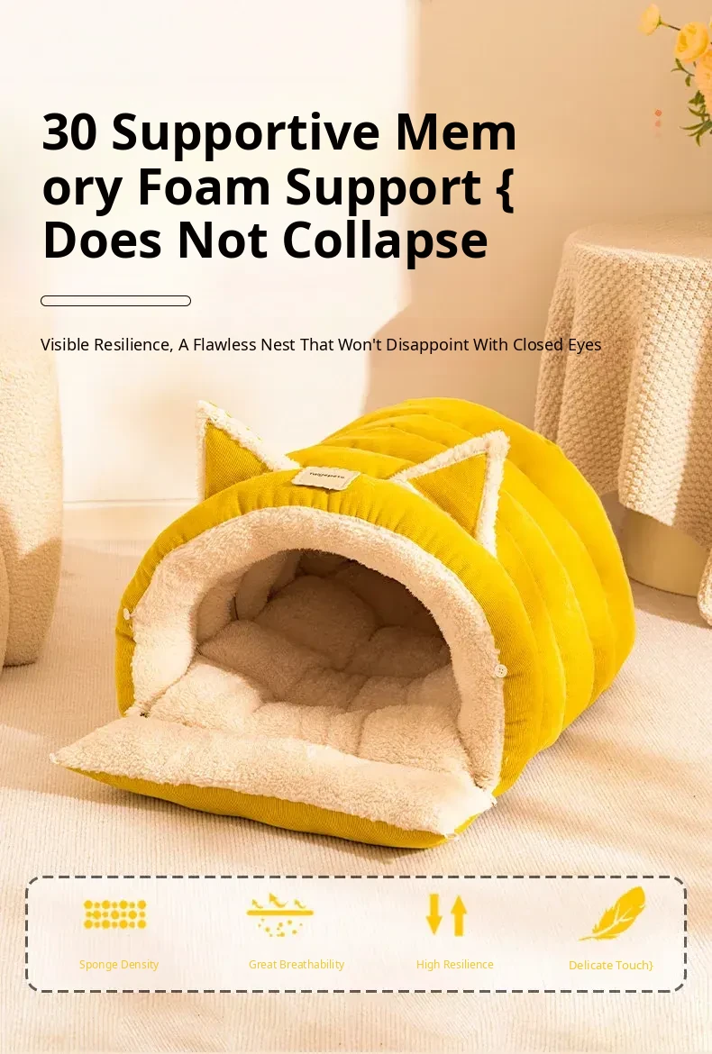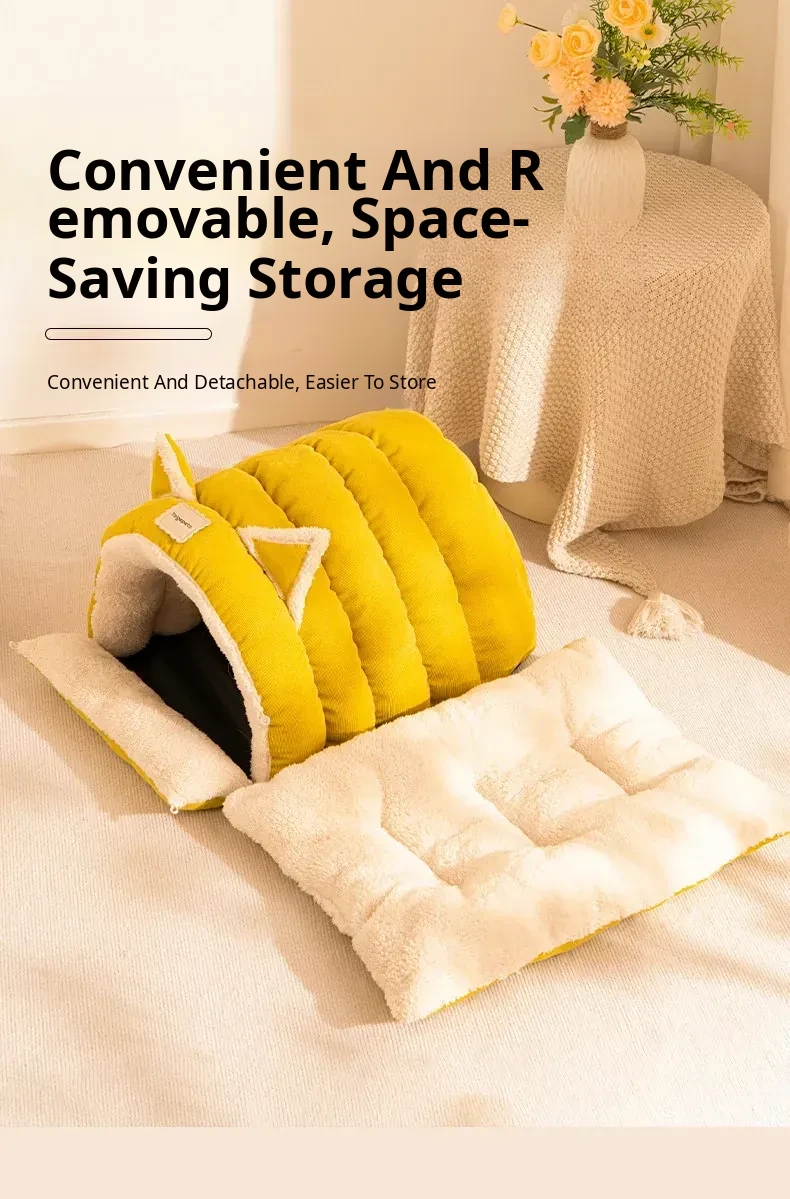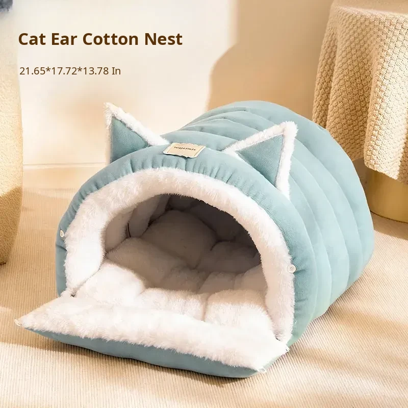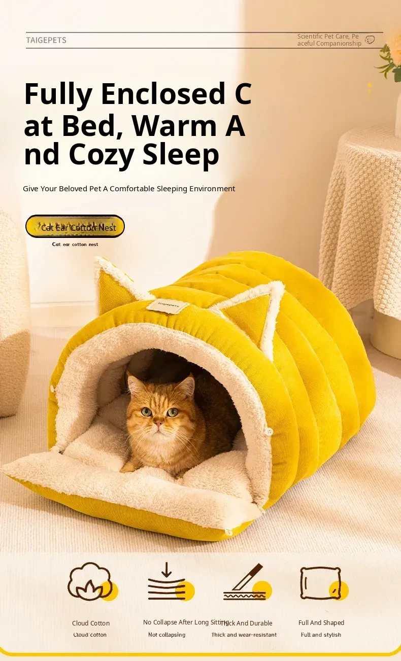 2025 New Thickened Warm Enclosed Cat Bed - Safe Winter Hideaway for Cats and Dogs, Perfect Sleeping Bag for Cold Days