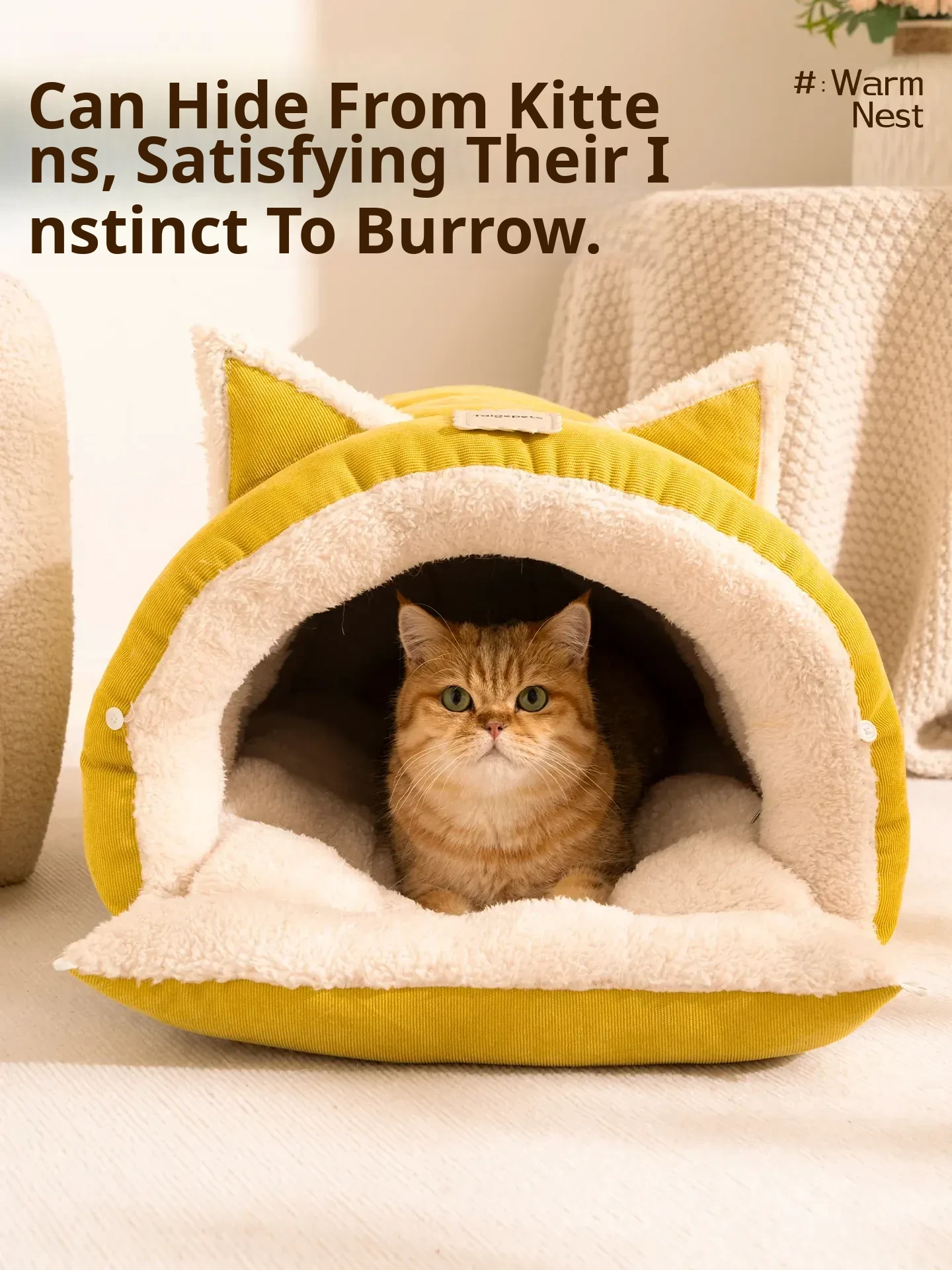 Cat Ear Cotton Velvet-Warm Yellow [Thickened and Super Warm]