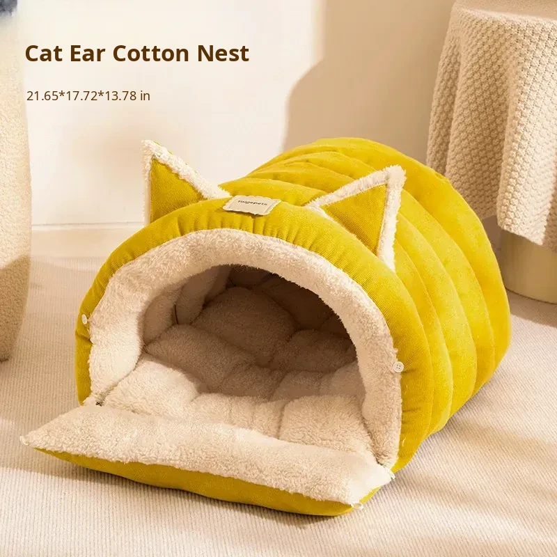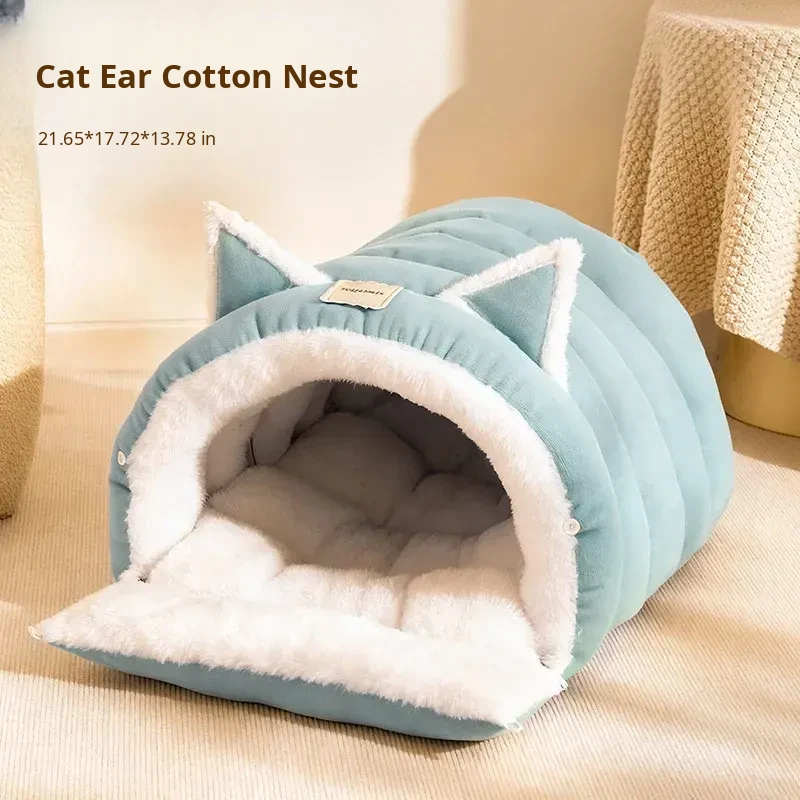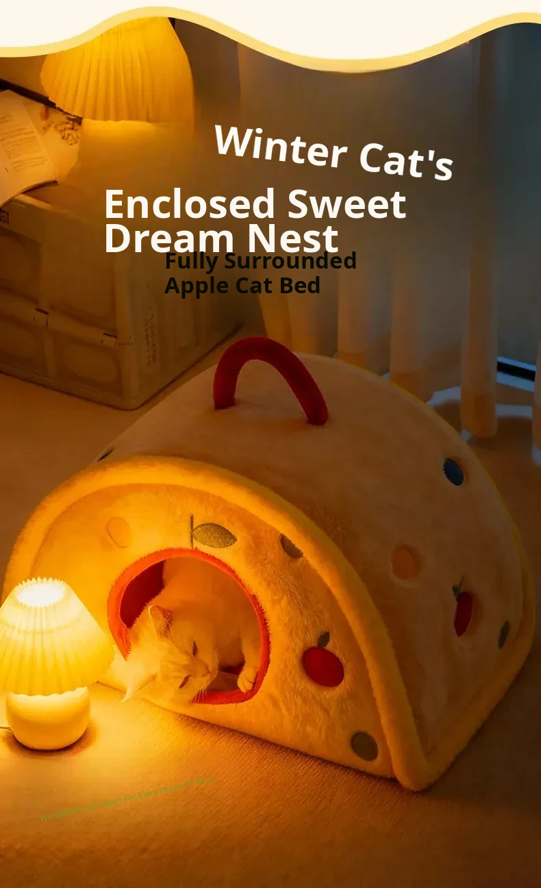 2025 New Thickened Winter Cat Bed - Cozy Enclosed Design for Ultimate Safety and Comfort, Extra Large Size, Plush Bunny Fleece for Your Feline Friend