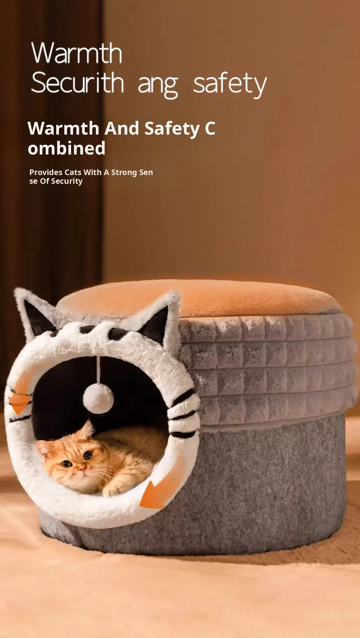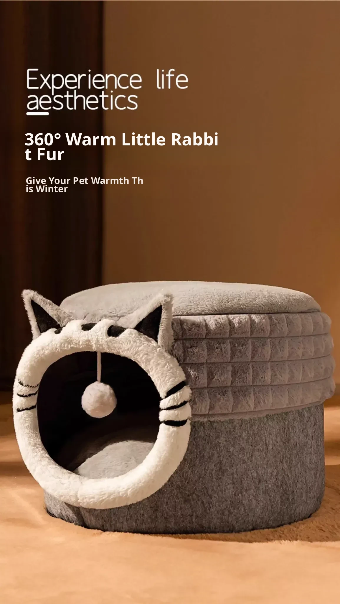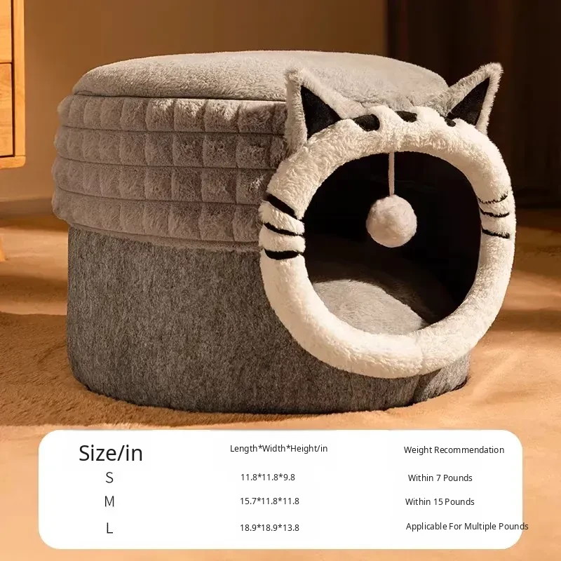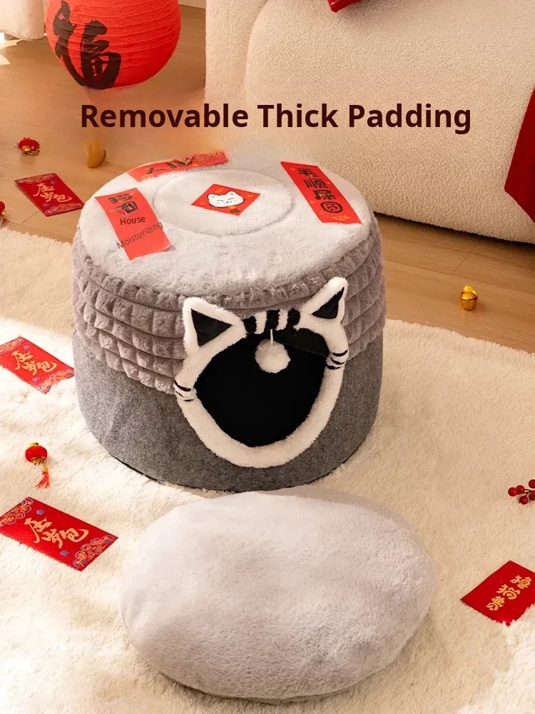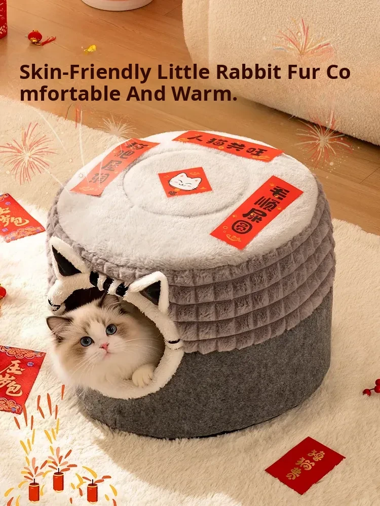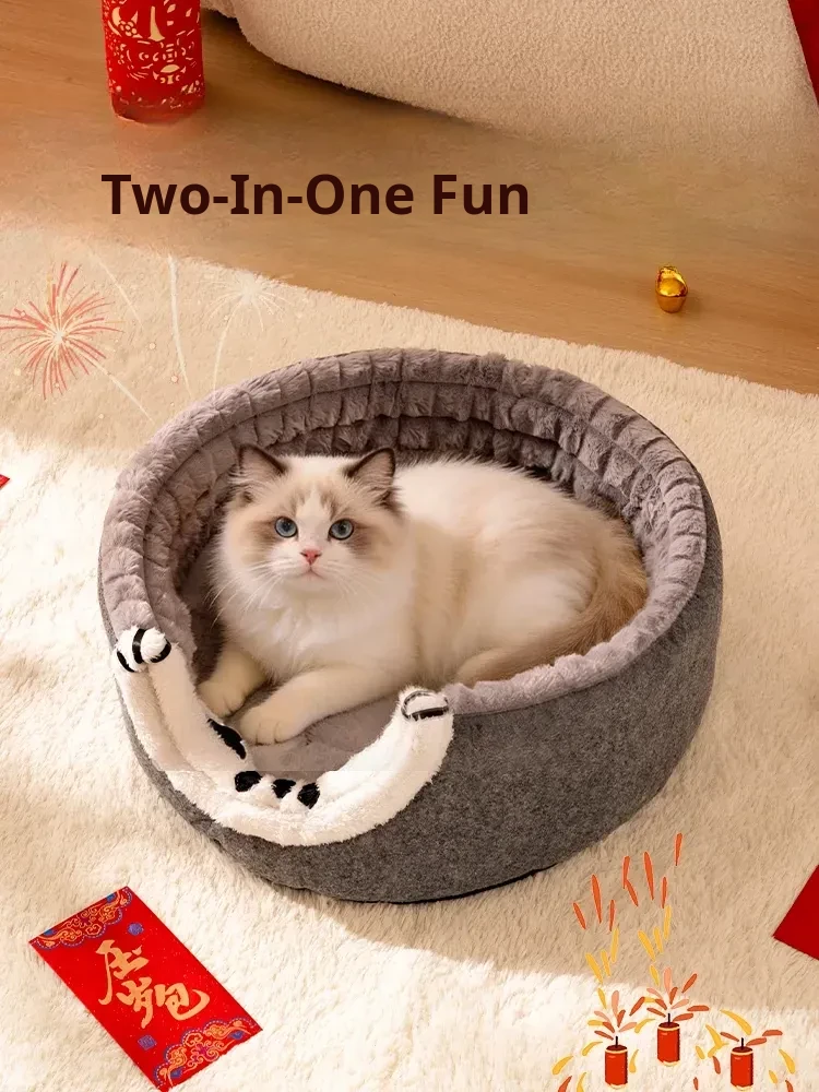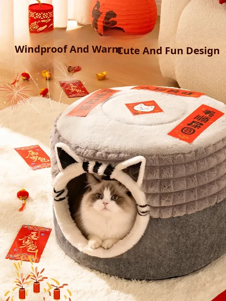 2025 New Thickened Winter Cat House - Cozy Enclosed Cat Bed for Ultimate Comfort and Security - Extra Large Round Cat Sleeping Nest