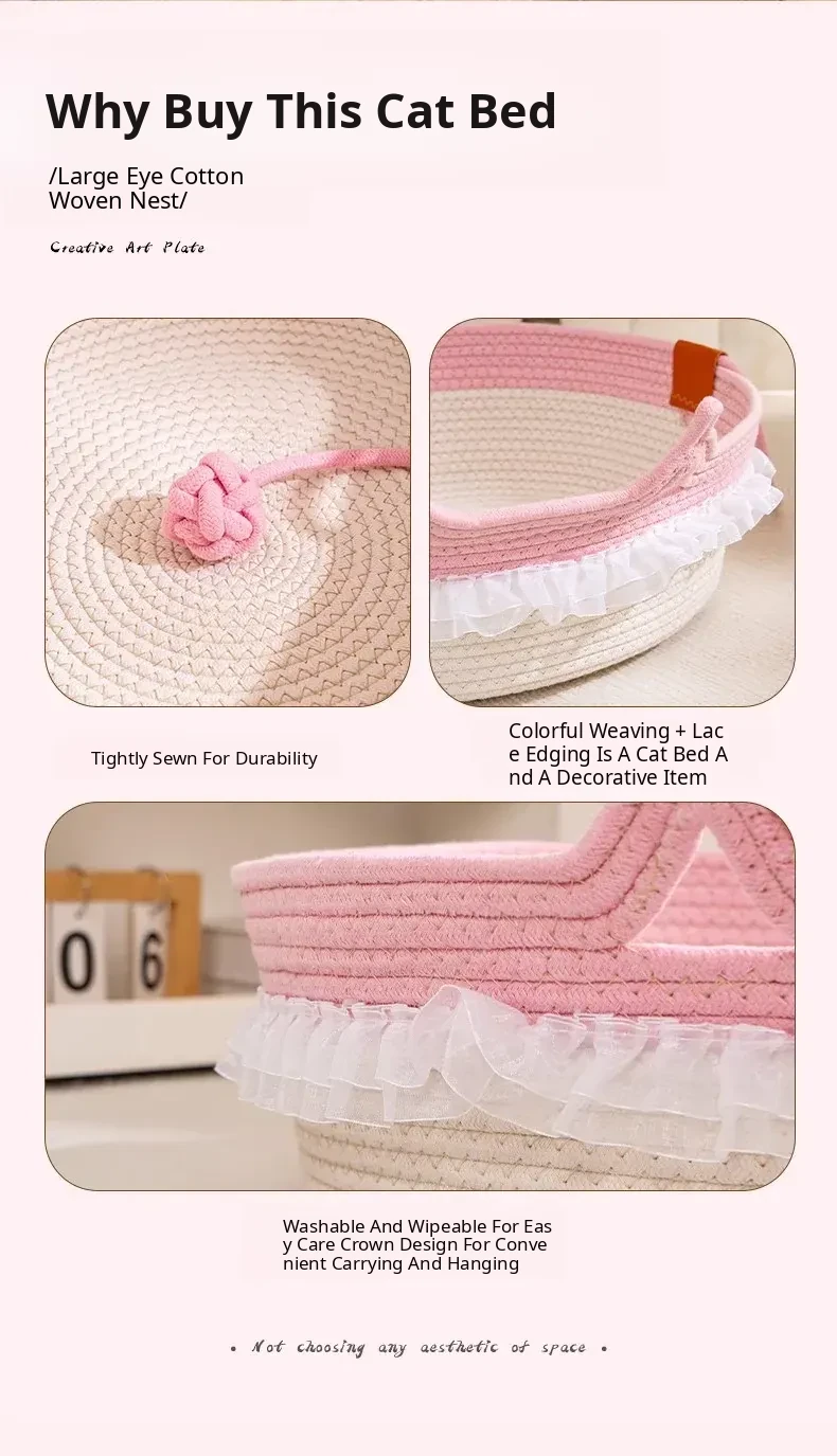 【All-Cotton Rope Braid】Princess-Style Skirted Bed Nest
