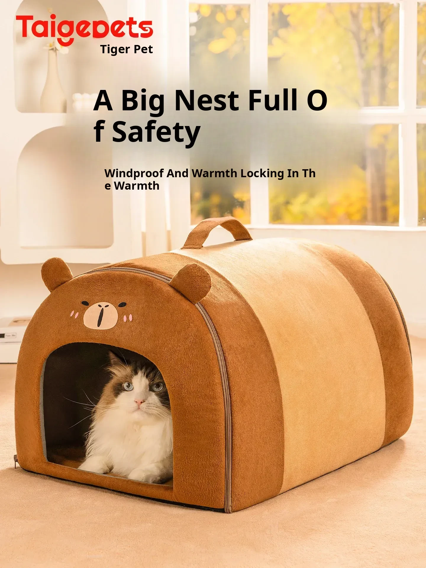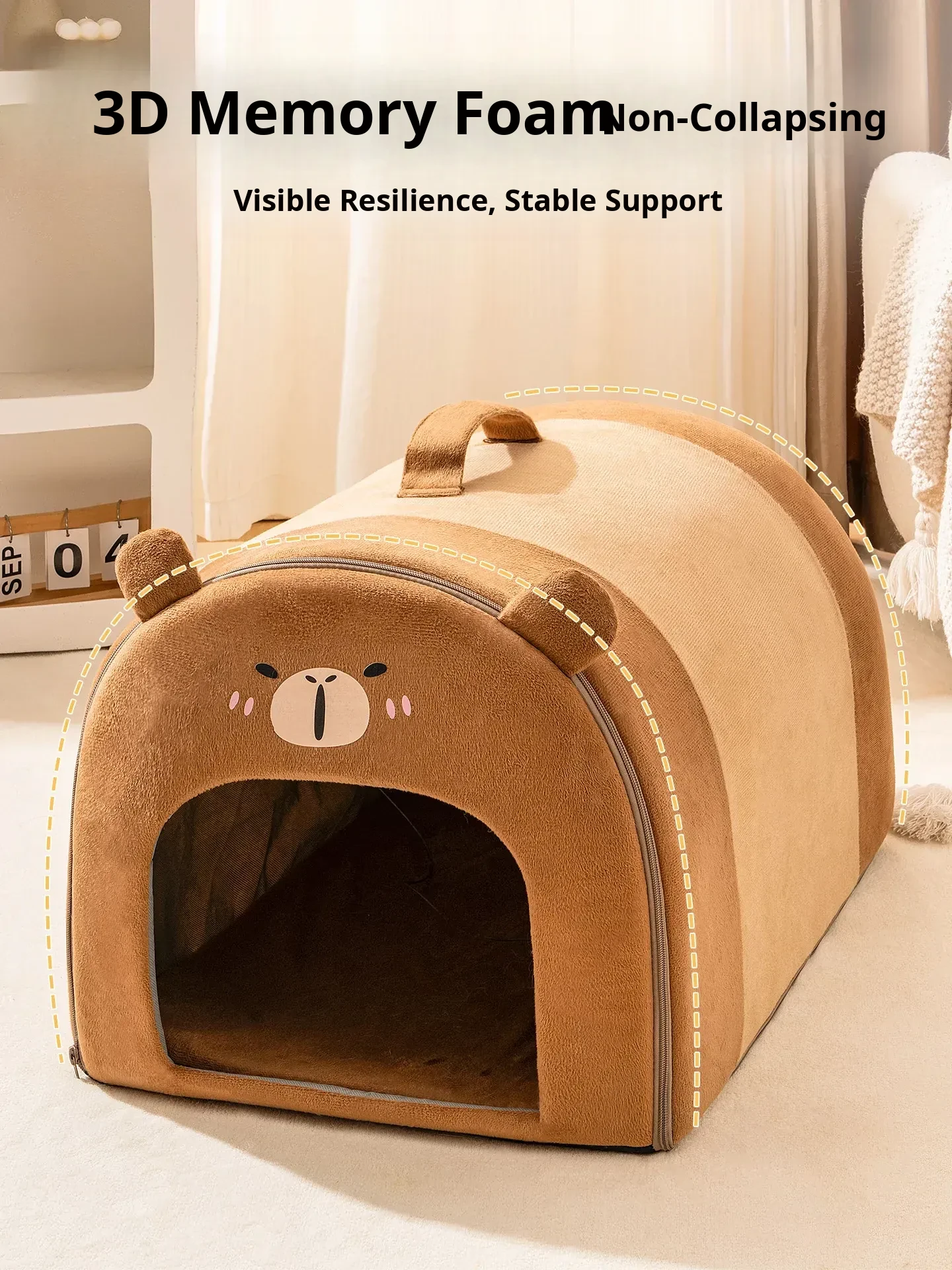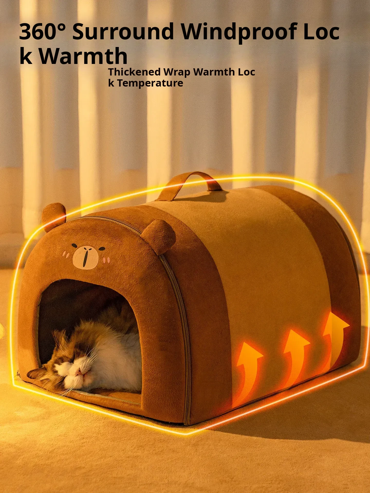 Capybara Cozy Winter Cat House - Enclosed Design for Maximum Safety, Thick and Warm, Removable Washable, Suitable for All Seasons Dog House