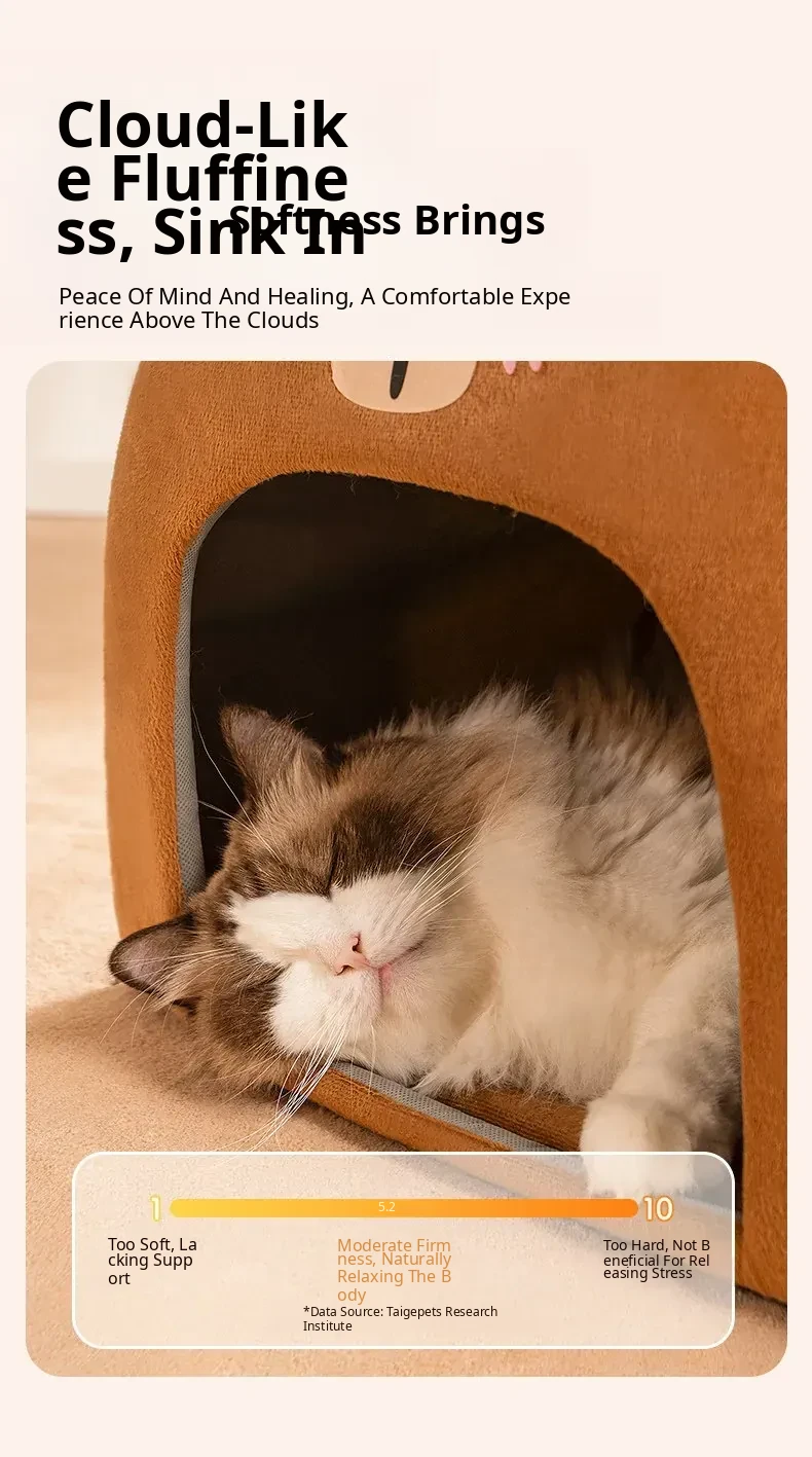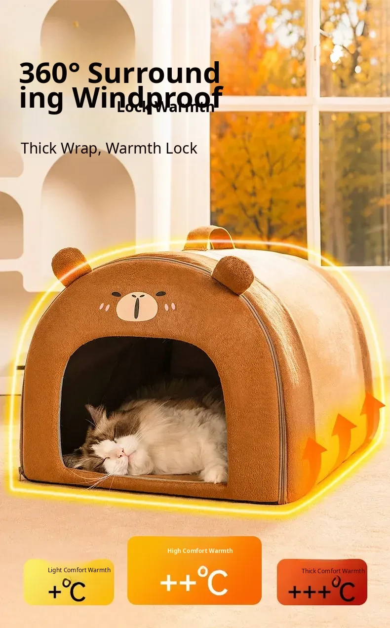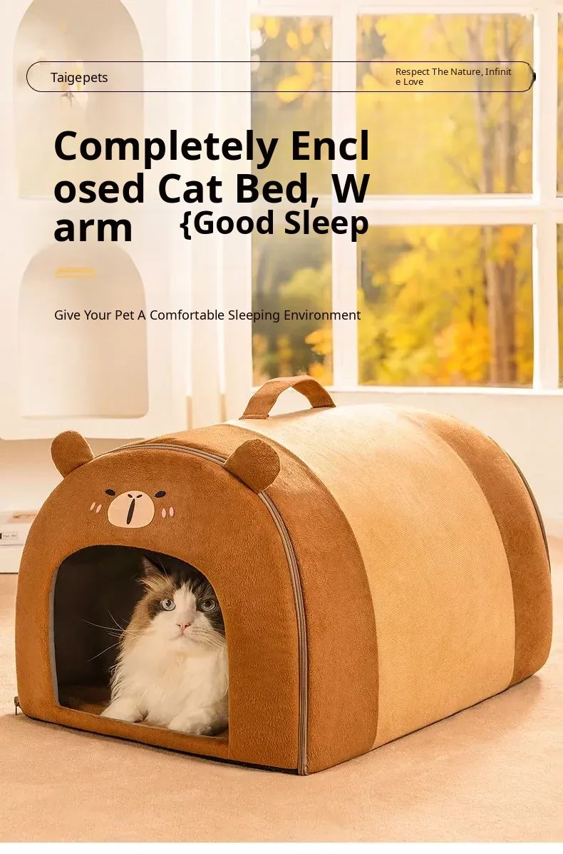 Capybara Cozy Winter Cat House - Enclosed Design for Maximum Safety, Thick and Warm, Removable Washable, Suitable for All Seasons Dog House