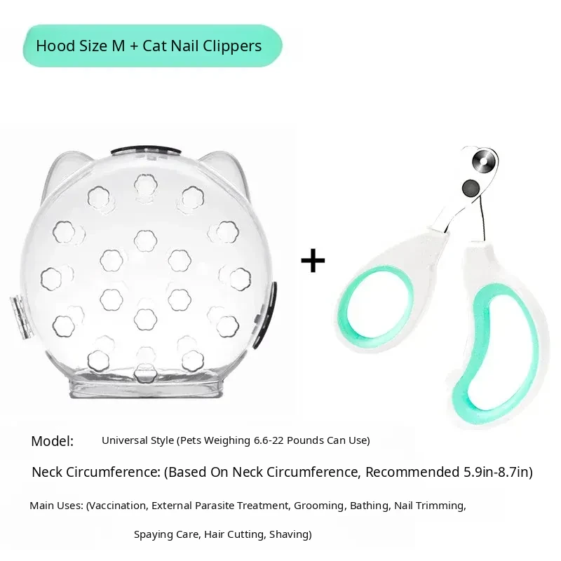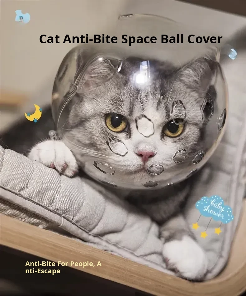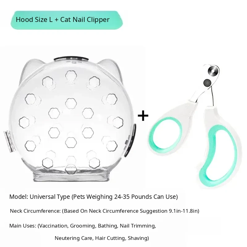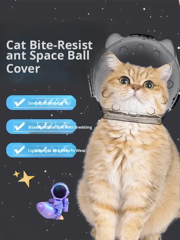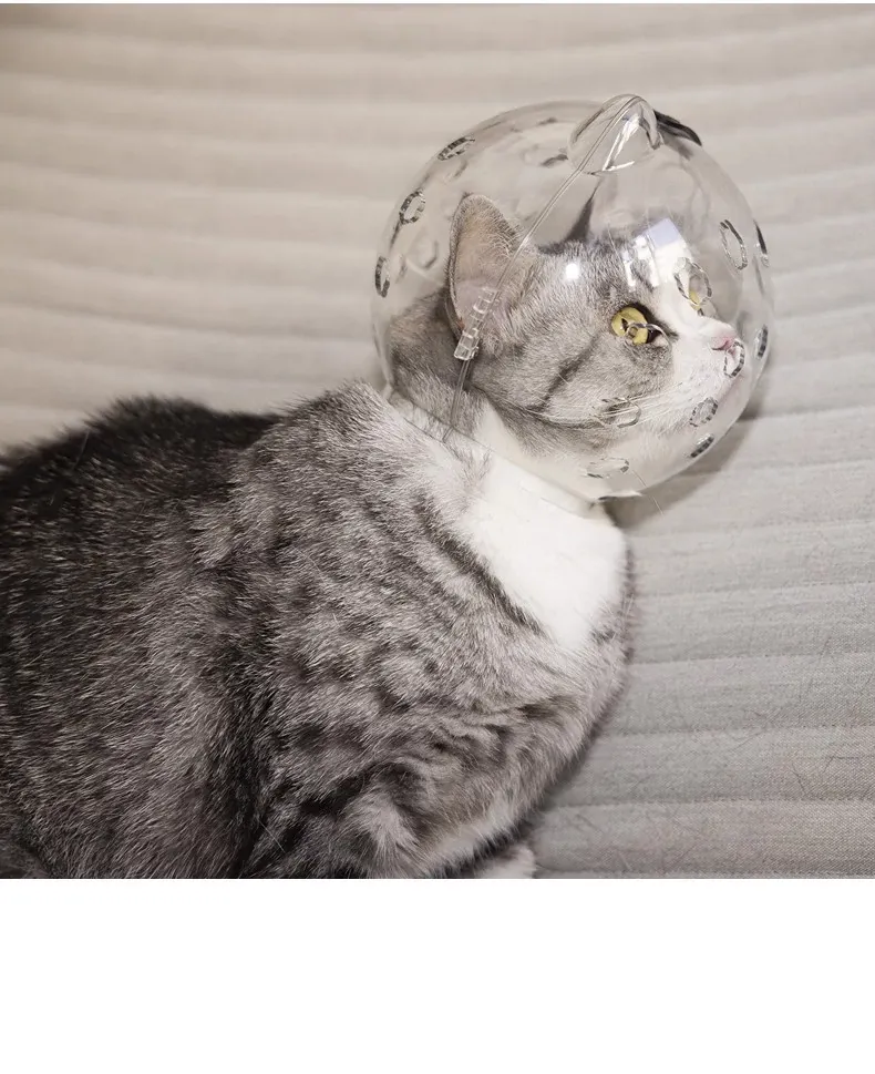 Cat Head Cover - Space Helmet for Cats, Pet Bathing & Nail Trimming, Bite-Proof Headgear and Dog Lick Prevention, Elizabethan Collar for Cats and Dogs