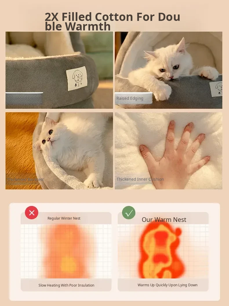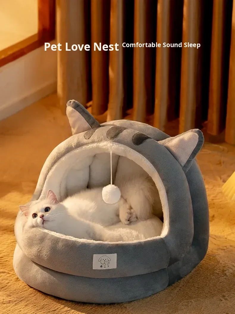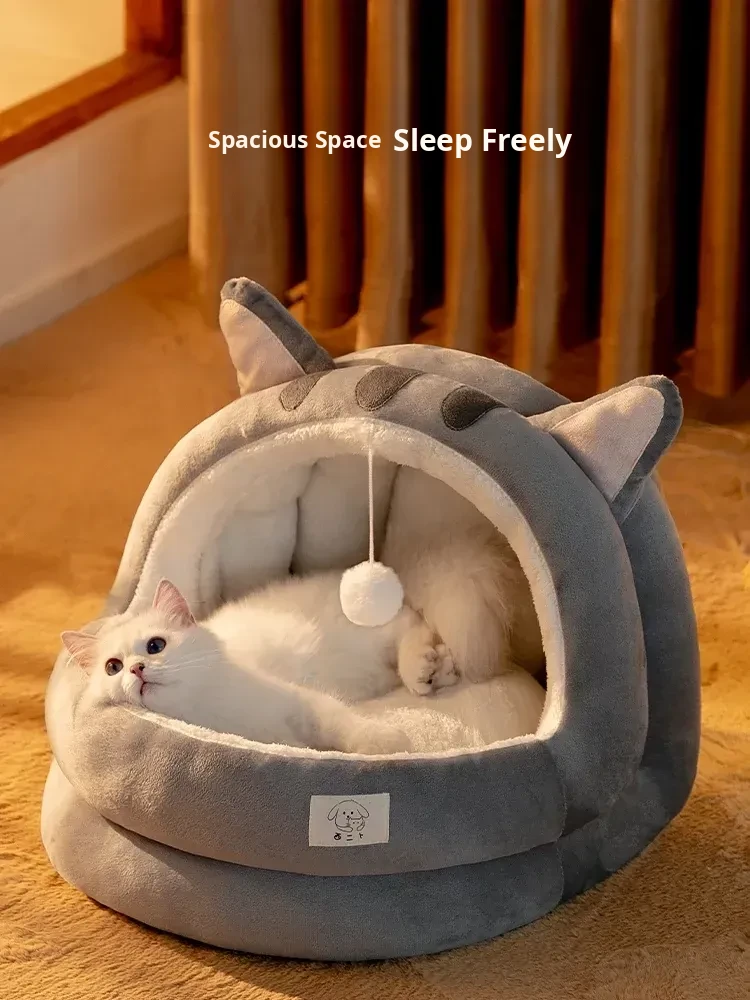 Cozy Enclosed Cat House for Winter - All-Season Warm and Safe Bed for Kittens and Cats, Perfect Pet Sleeping Nest for Ultimate Comfort and Security