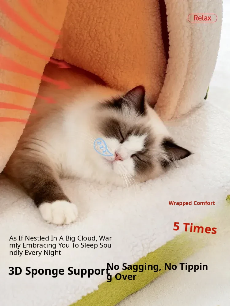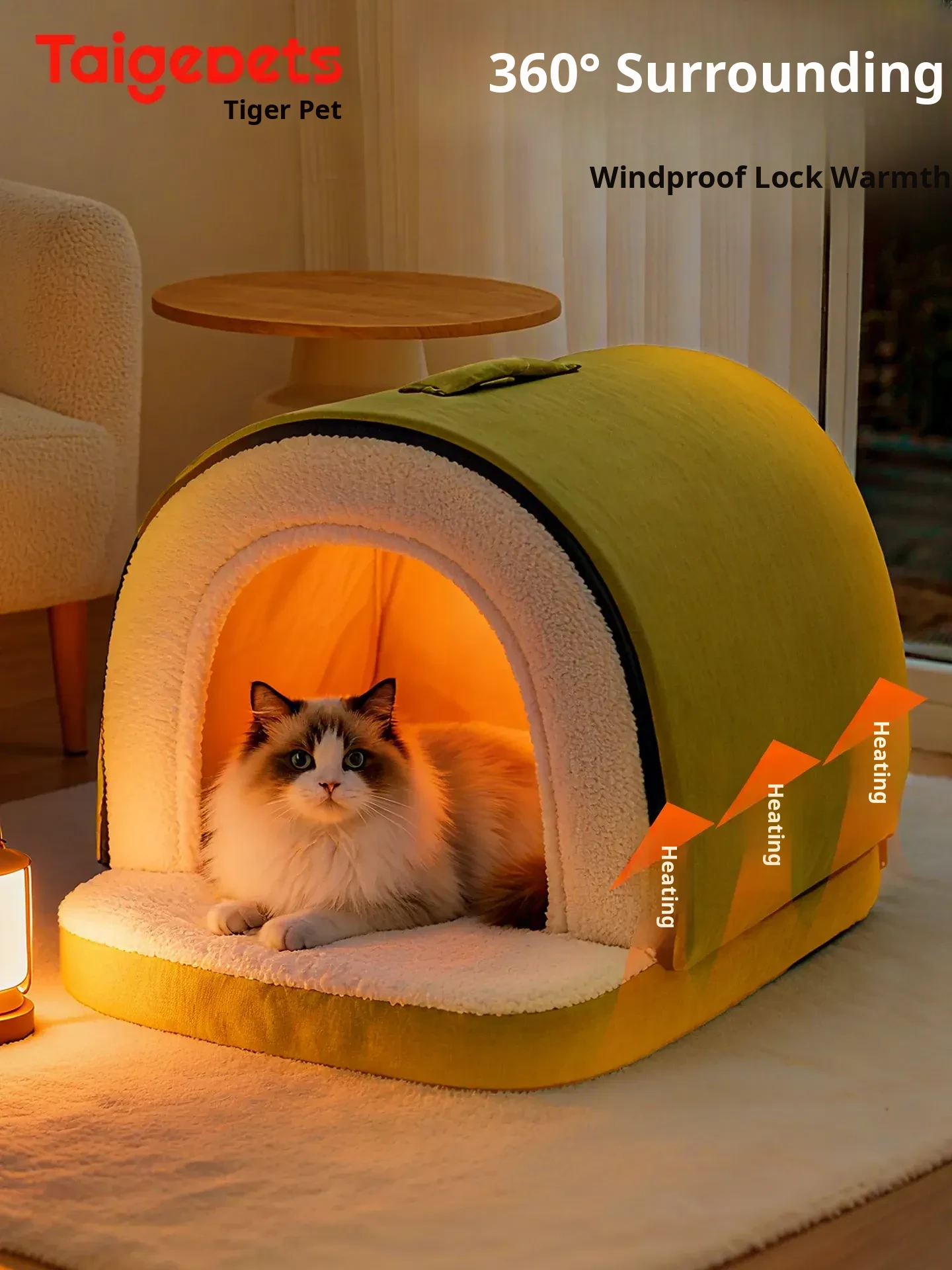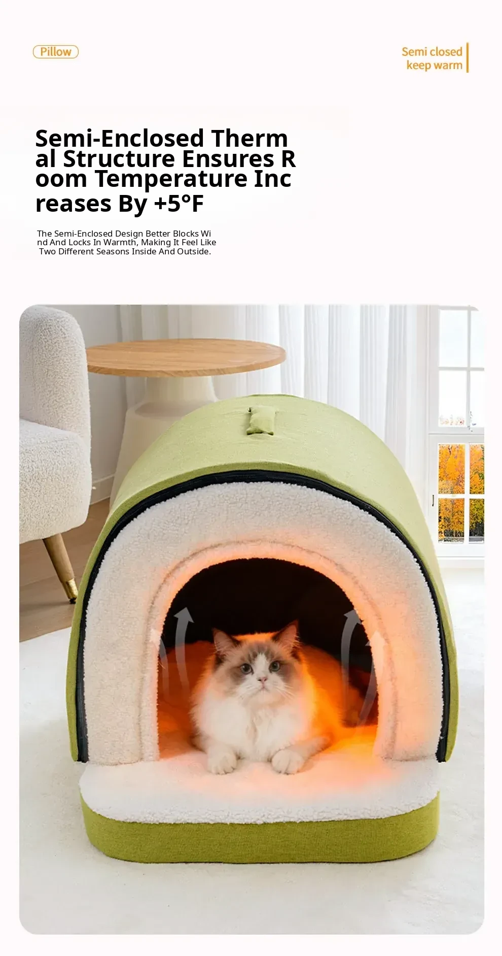 Cozy Winter Cat Bed - Thickened Enclosed Design for Ultimate Security and Warmth, Semi-Closed Style, Washable, Perfect for All Seasons and Kittens!