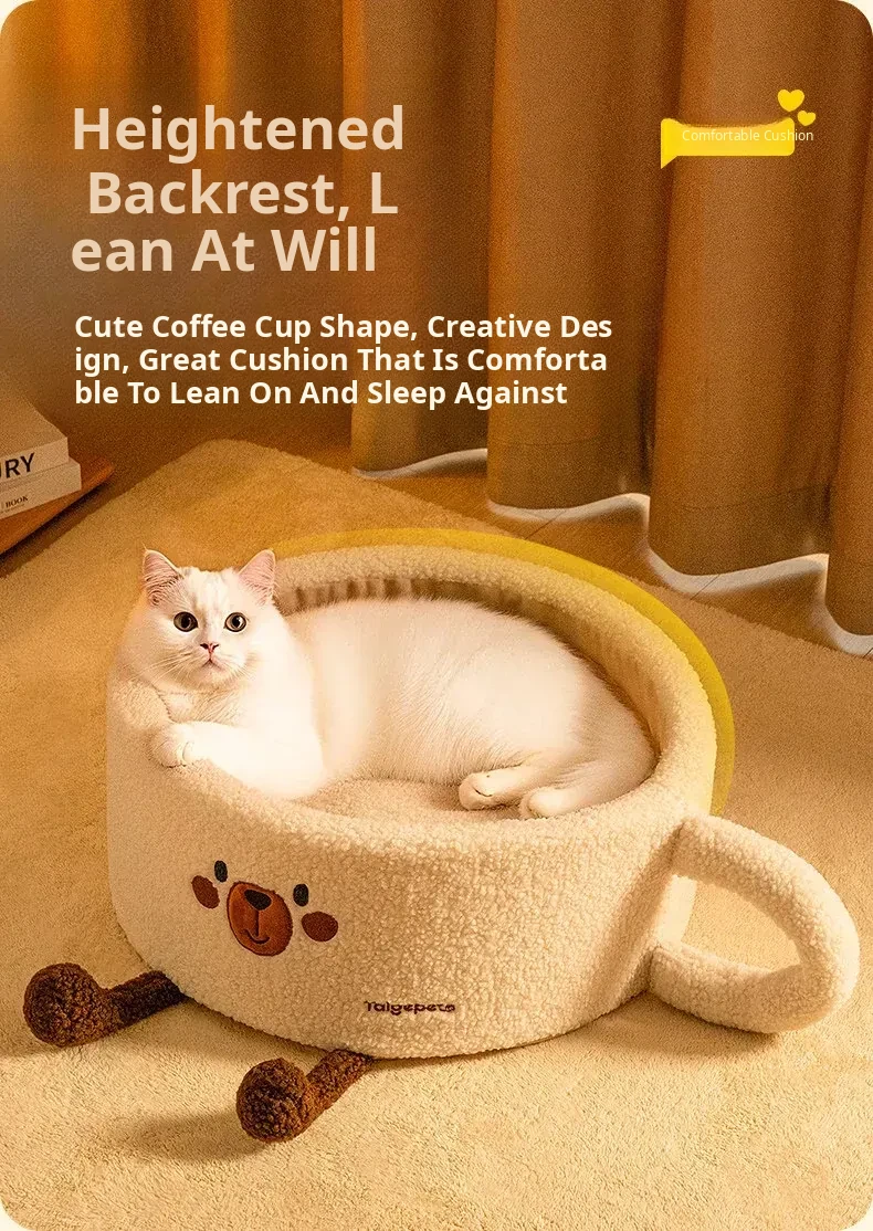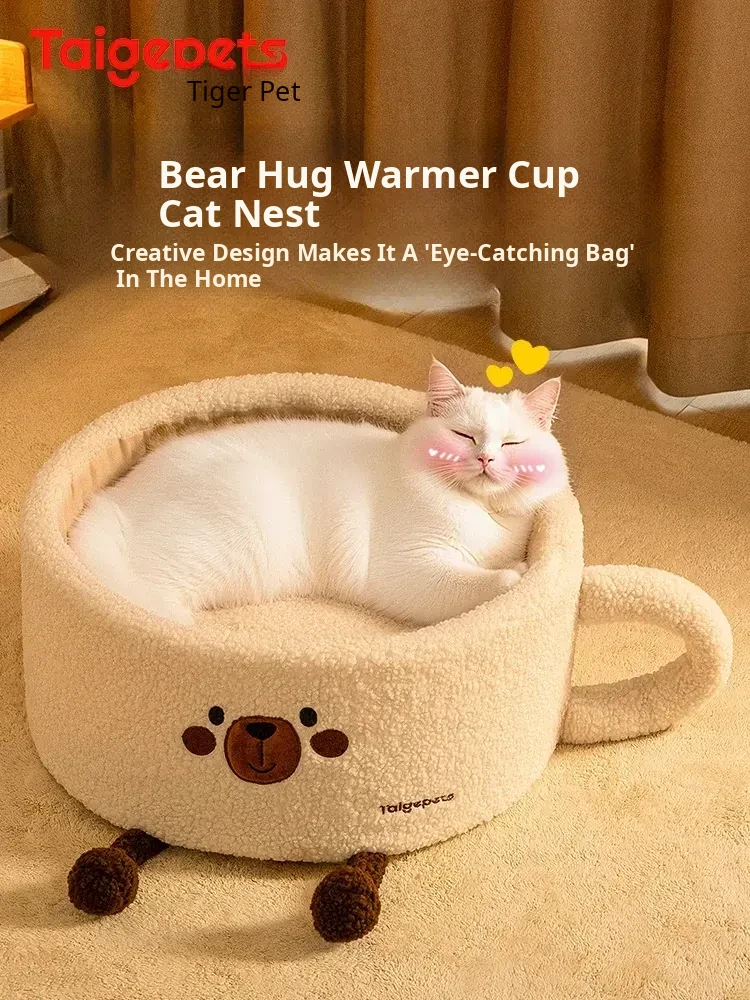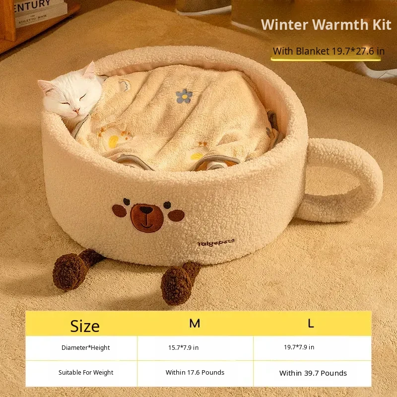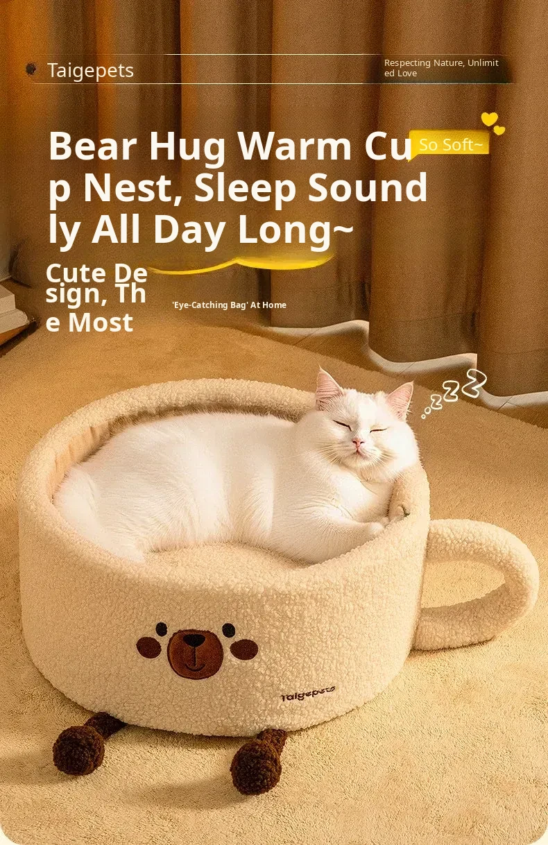 Cozy Winter Cat Bed - Thickened, Semi-Enclosed Design for All Seasons, Provides Comfort and Security for Your Feline Friend in Cold Weather