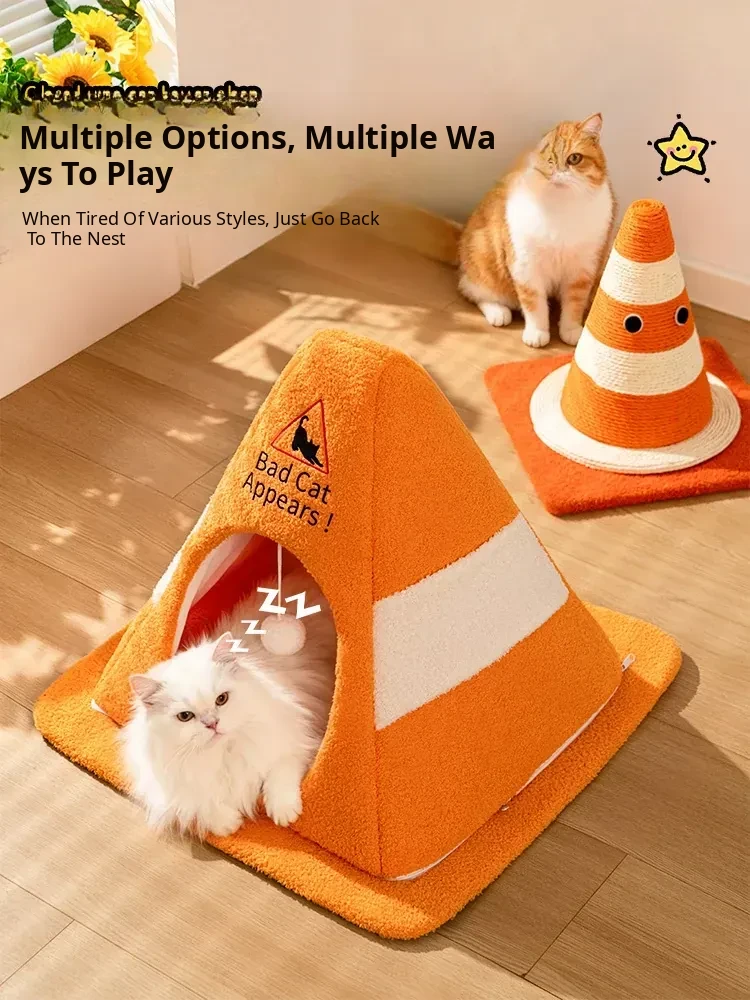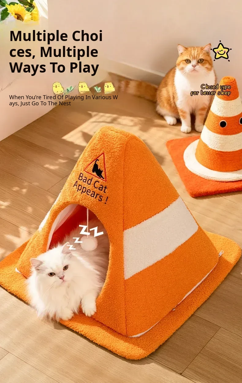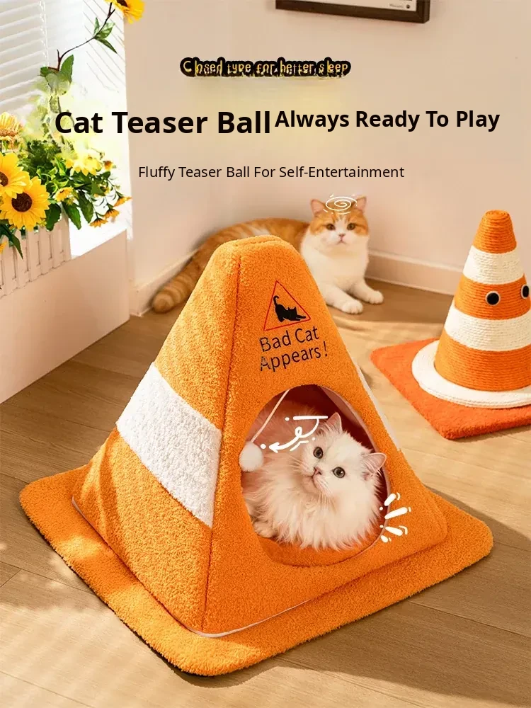[Internet Celebrity Roadblock Cat Nest] 360°Windproof and Warm, Fully Detachable and Washable, Comes with a Cat Ball
