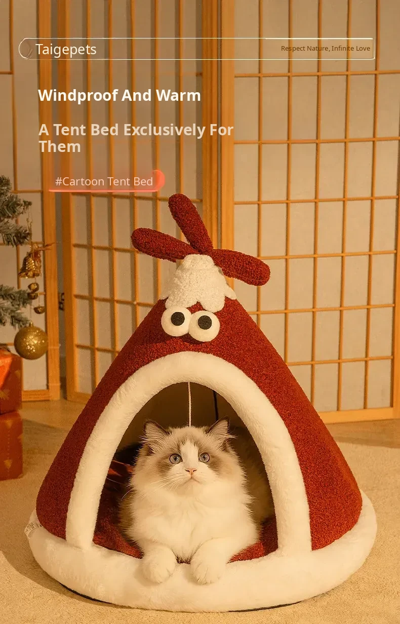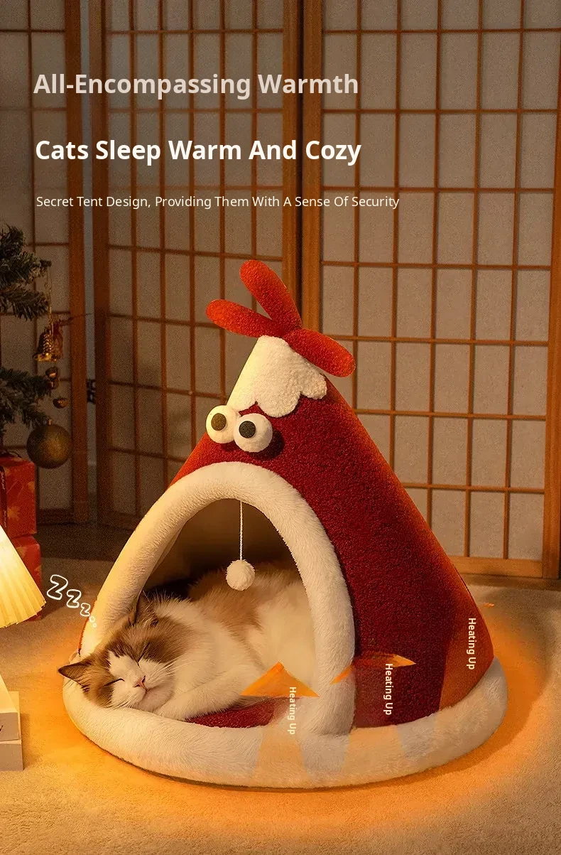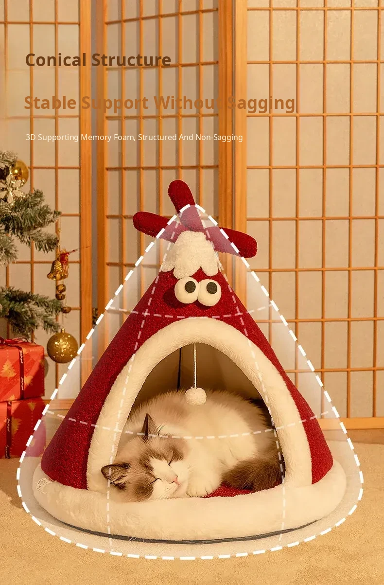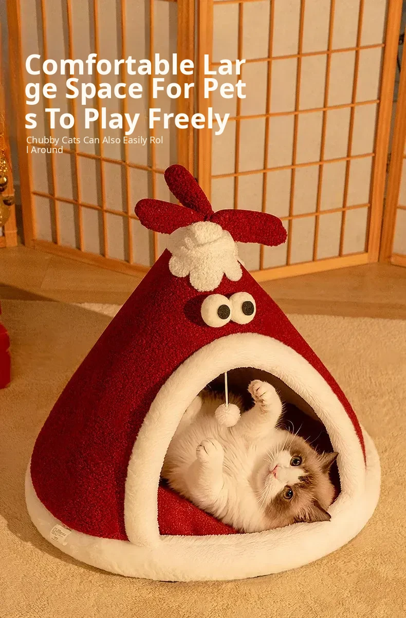 Cozy Winter Cat Tent - Insulated Enclosed Bed for Year-Round Use, Providing Cats with a Safe Haven and Comfort; Perfect for Christmas!