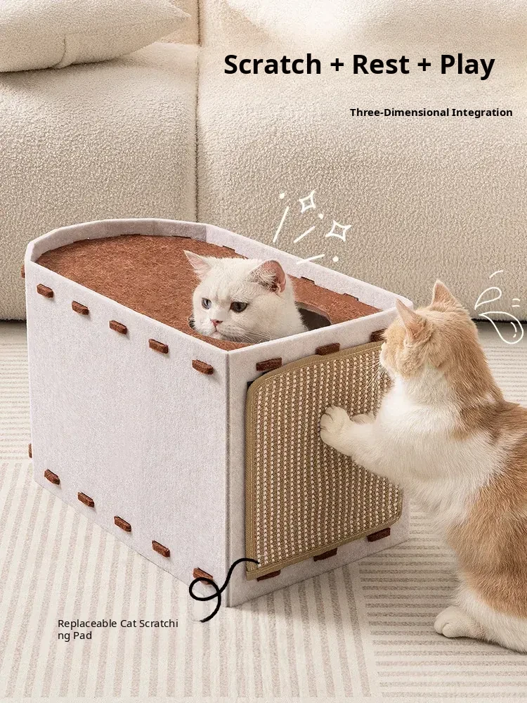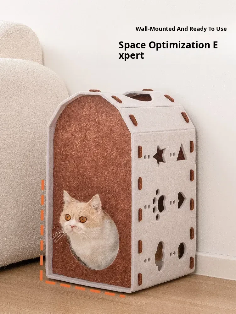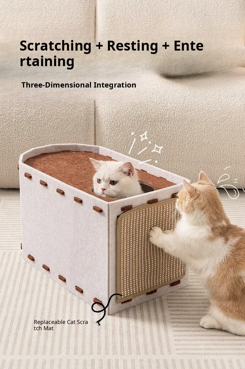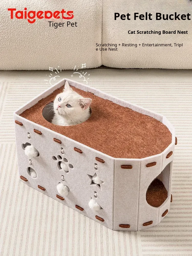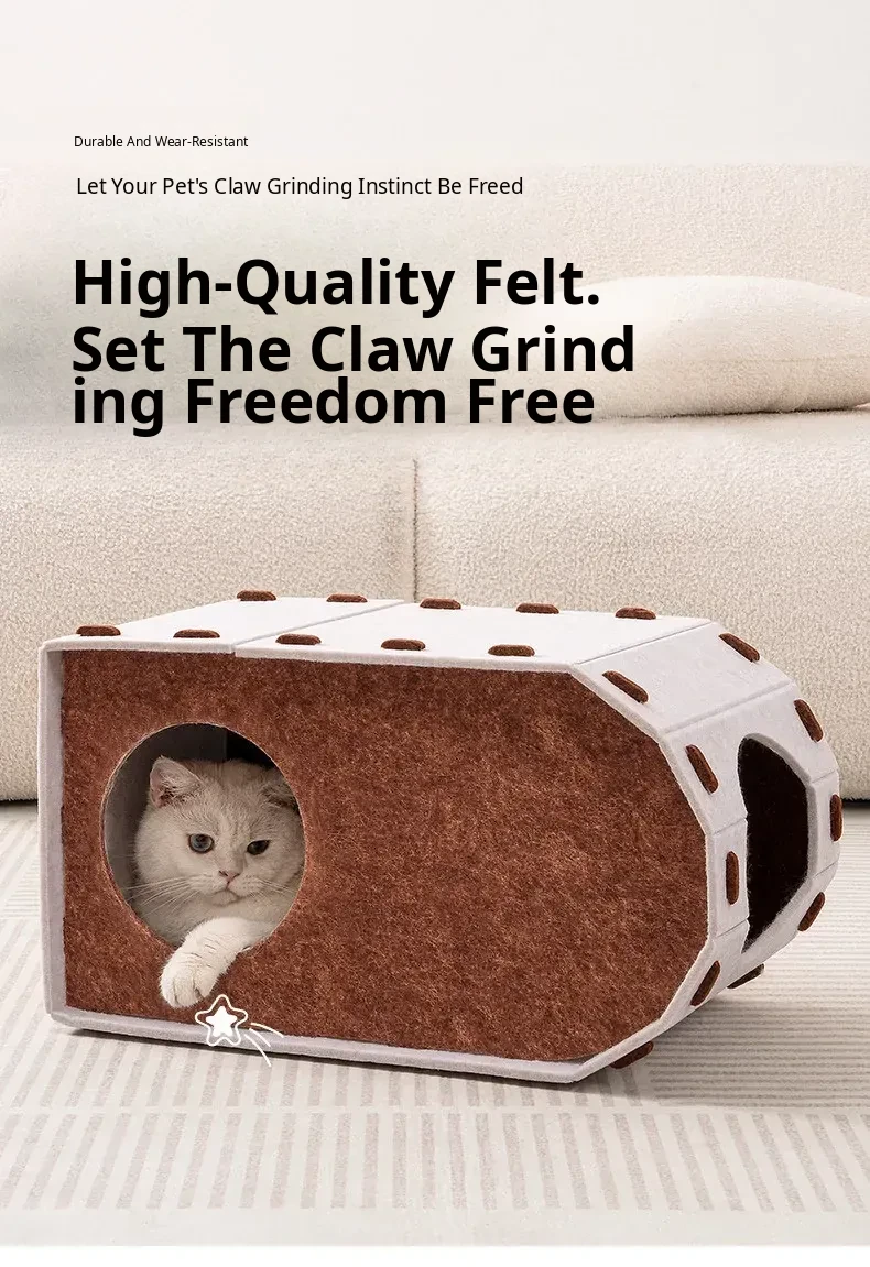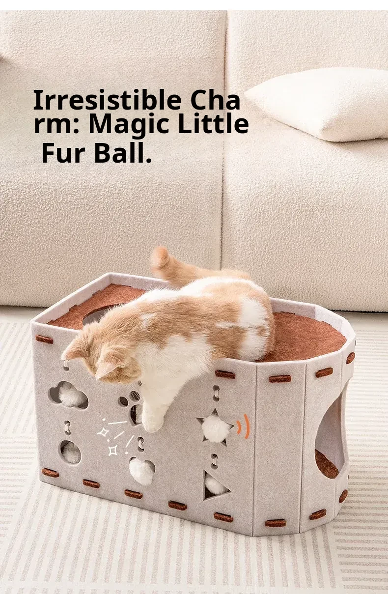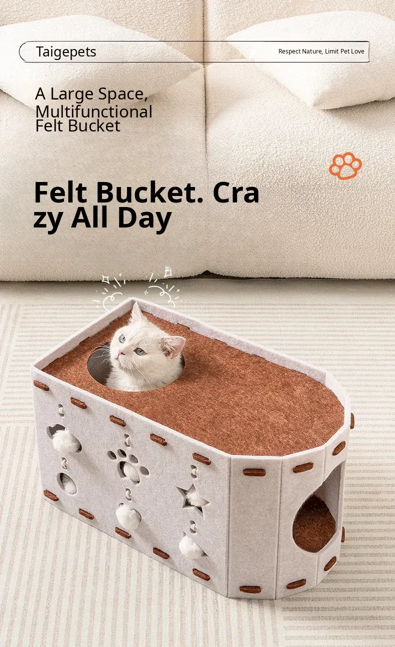 Felt Cat Nest [Drill Holes to Tease Cats, Sharpen Their Claws and Sleep by Themselves 5 in 1]