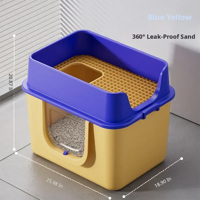 Blue and Yellow 25.98in Extra Large Size [One-Piece Leak-Proof] True Zero Sand Leakage (Comes with a Cat Litter Scoop)