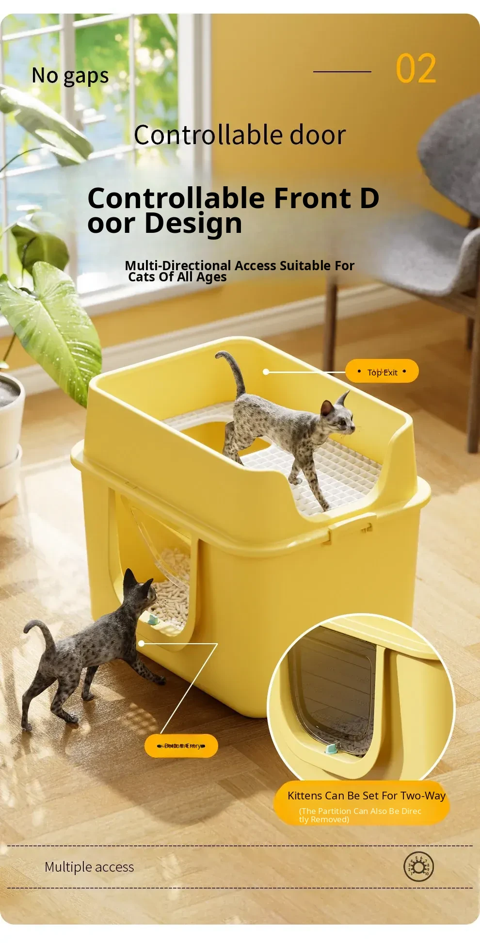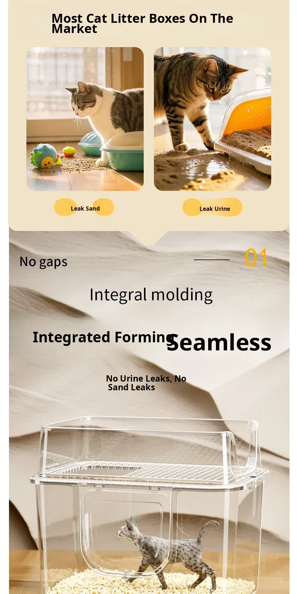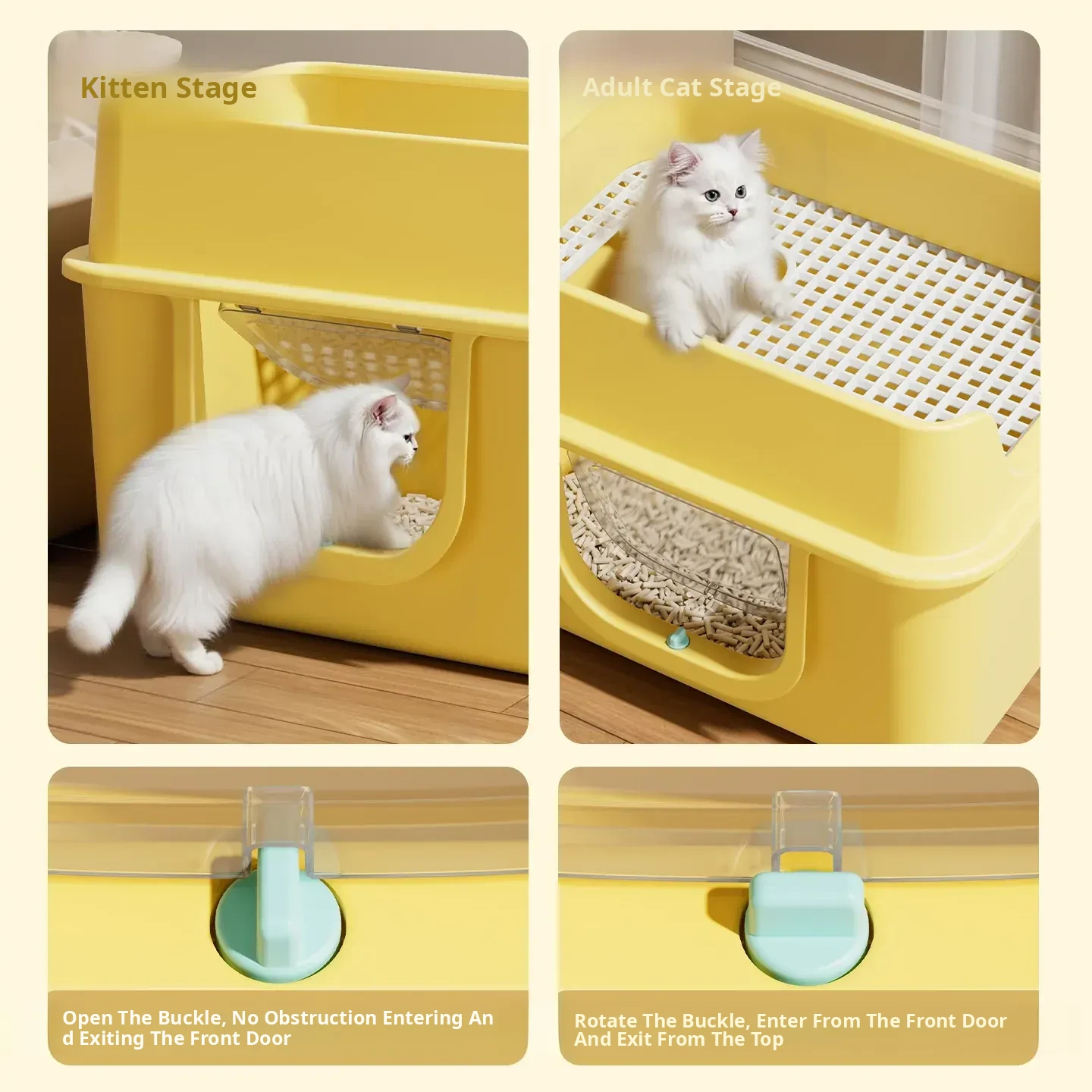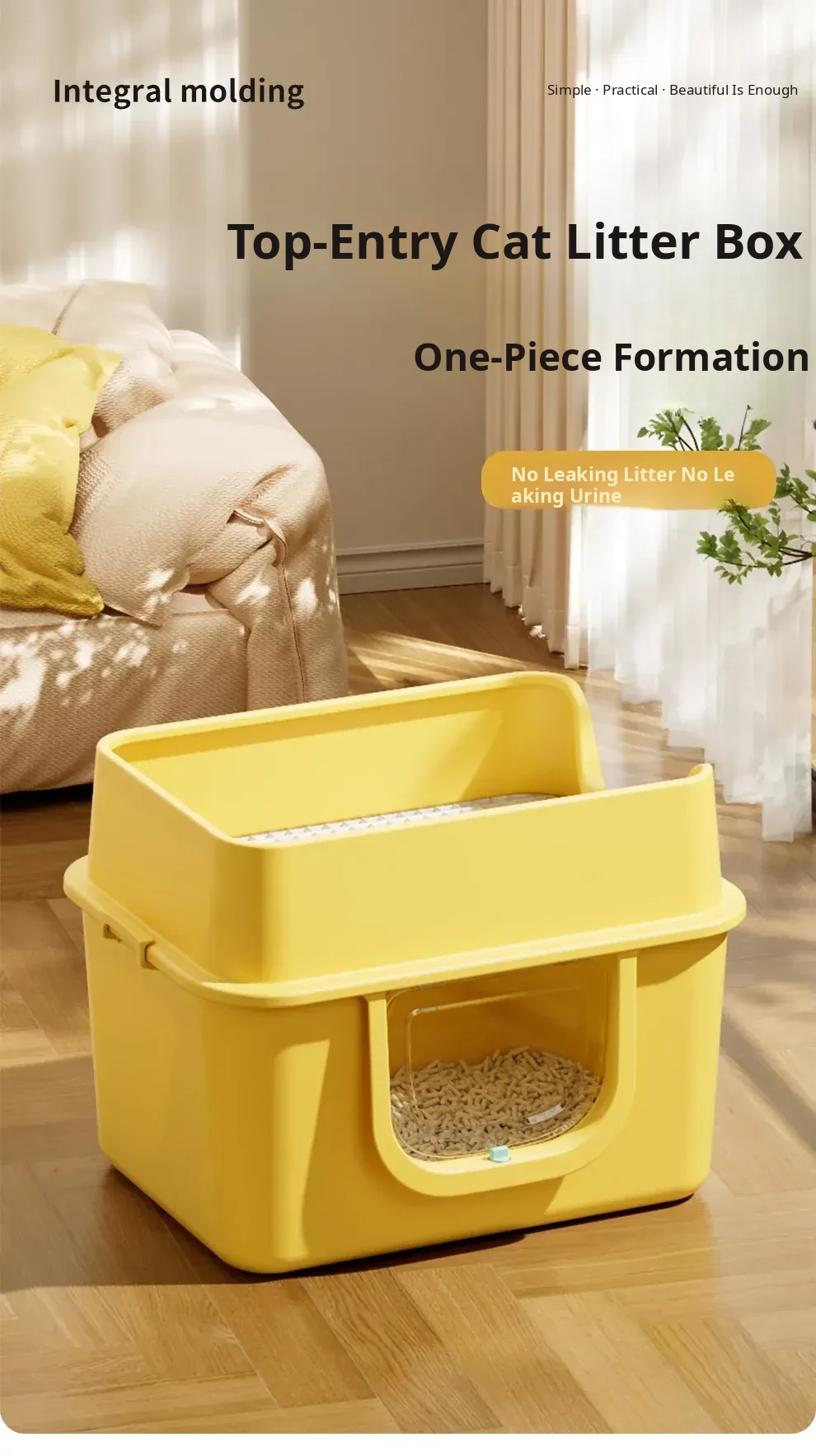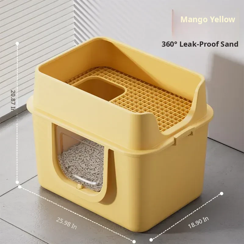 Mango Yellow 25.98in Extra Large Size [One-Piece Leak-Proof] True Zero Sand Leakage (Comes with a Cat Litter Scoop)