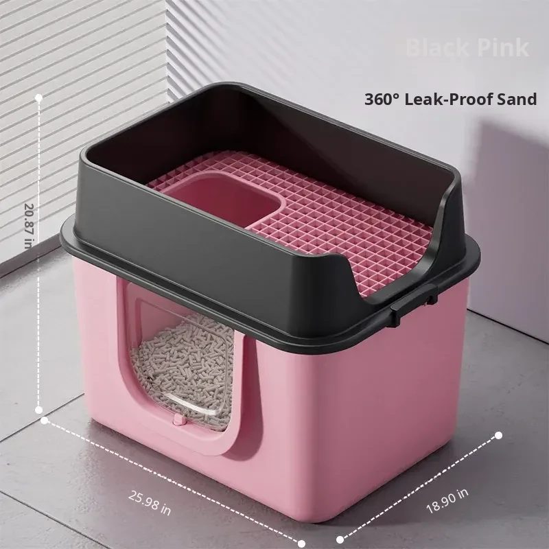 Pink and Black 25.98in Extra Large Size [One-Piece Leak-Proof] True Zero Sand Leakage (Comes with a Cat Litter Scoop)