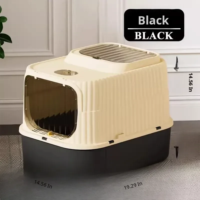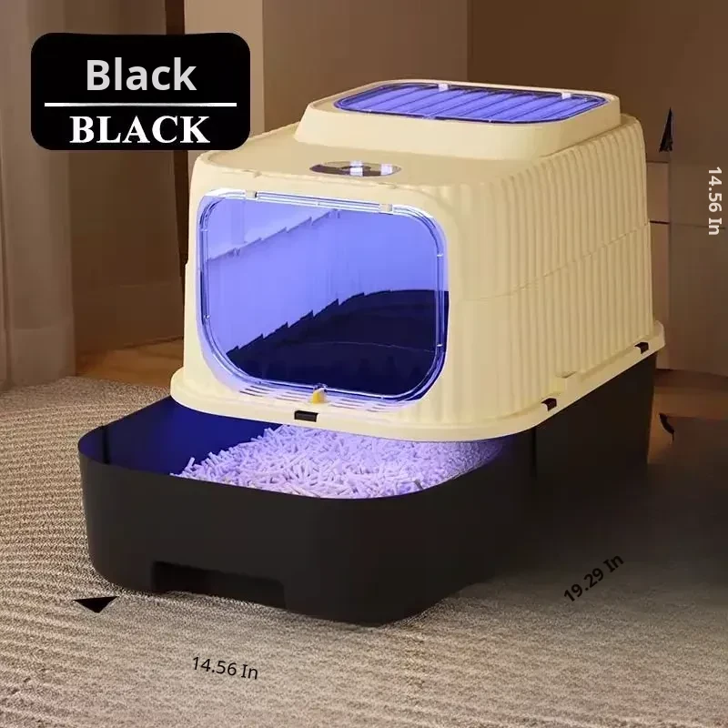 Deep Black⭐Fully Enclosed Drawer-Type Cat Litter Box