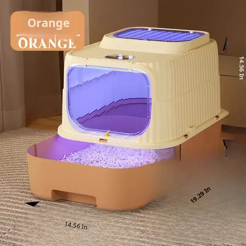 Vibrant Orange⭐Fully Enclosed Drawer-Type Cat Litter Box