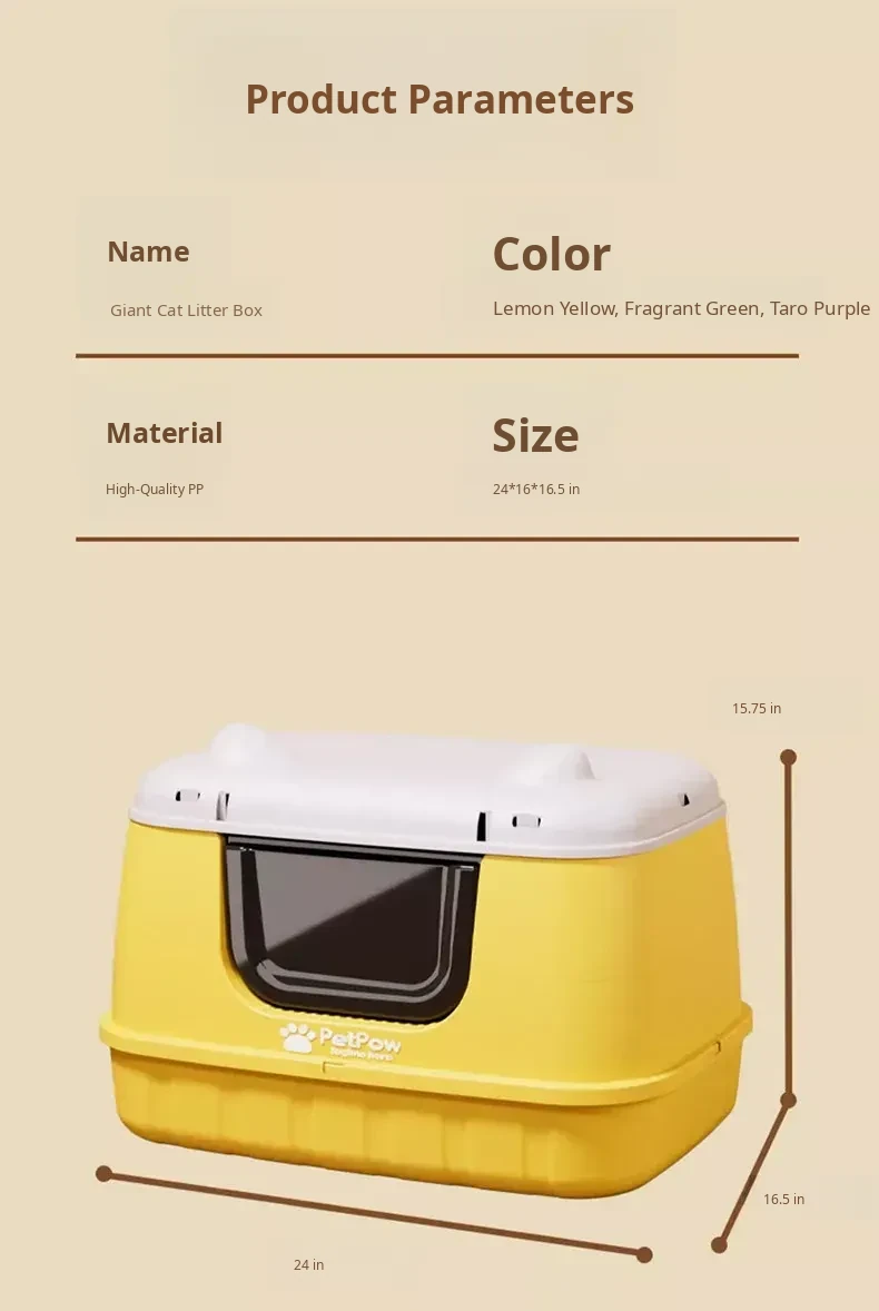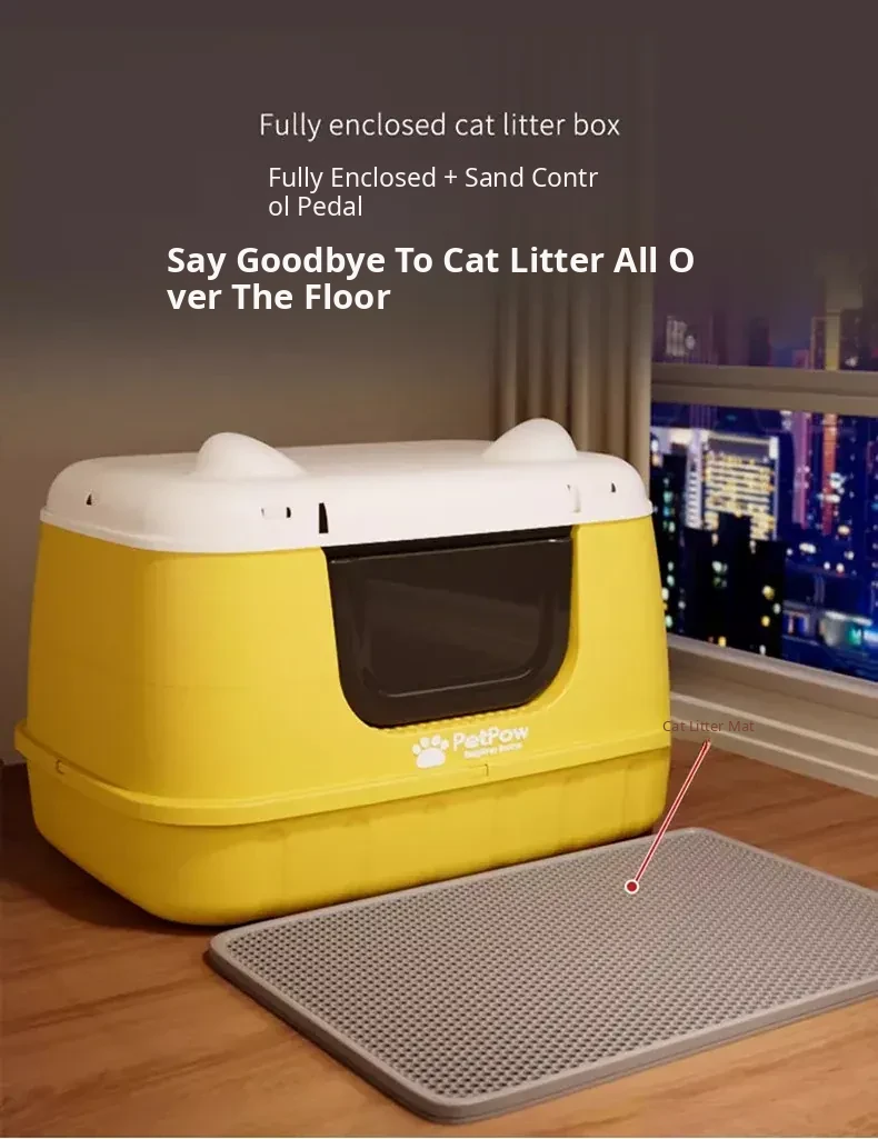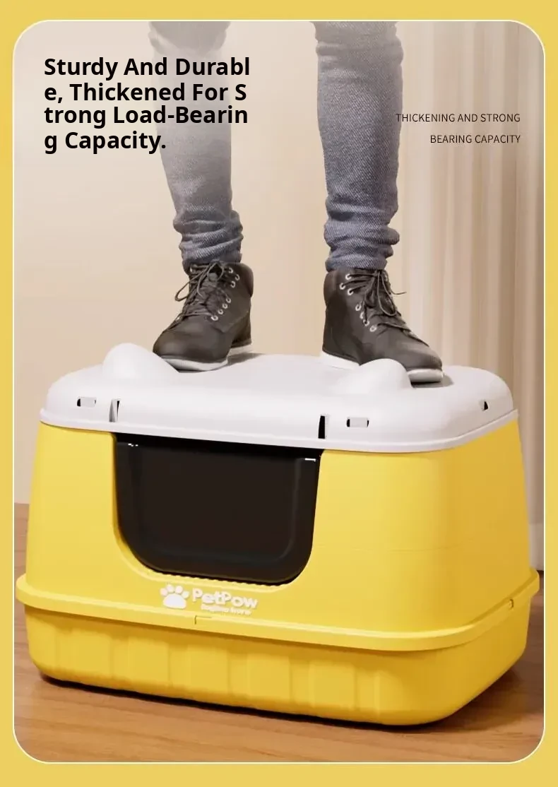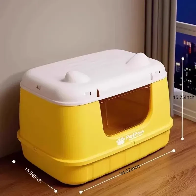 ★Upgraded Fully Enclosed [Lemon Yellow] 24.02in Cat Litter Box (for 15kg Fat Cats) Comes with a Cat Litter Scoop