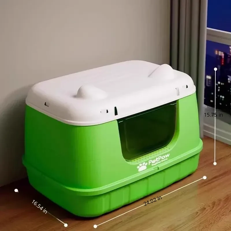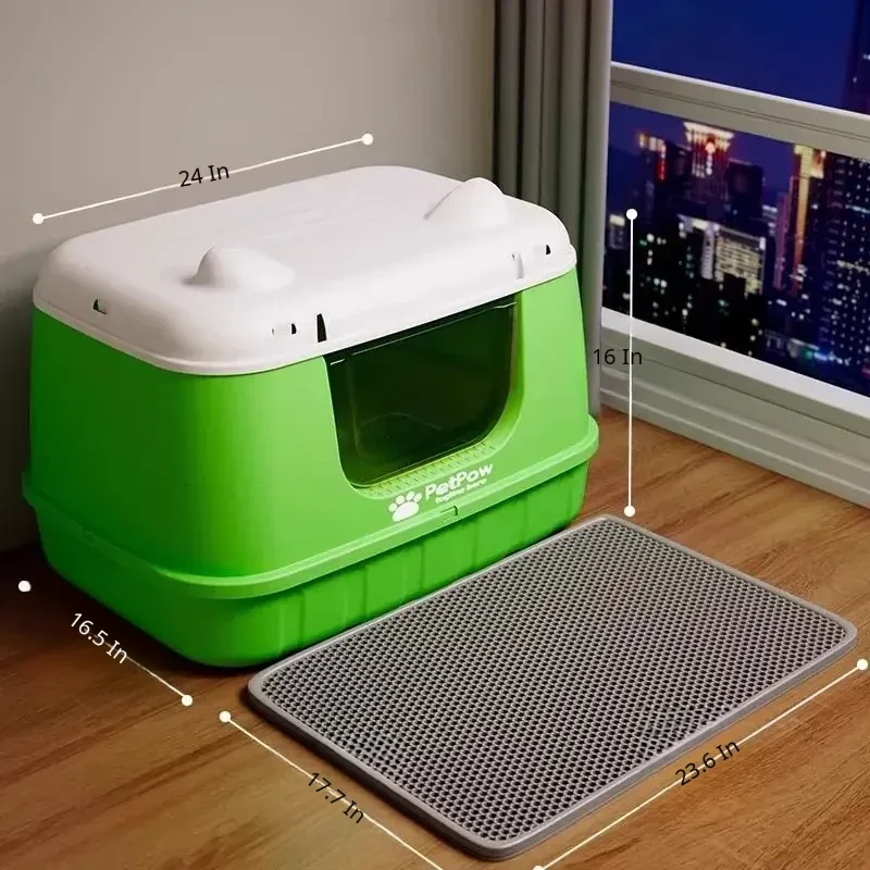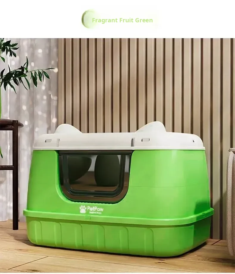 ★ Upgraded Fully Enclosed [Fragrant Fruit Green] 24.02in Cat Litter Box (for 15kg Fat Cats) Comes with a Cat Litter Scoop