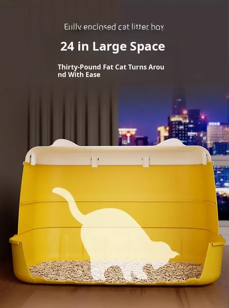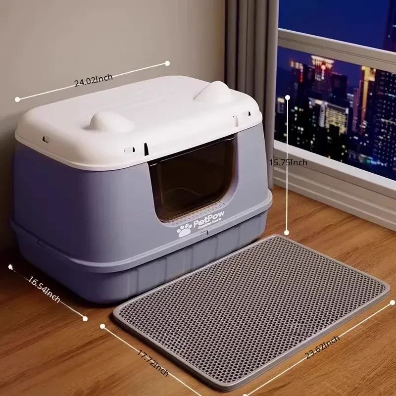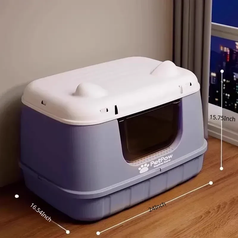 Extra Large Enclosed Odor-Control Cat Litter Box - Jumbo Cat Toilet with Splash Guard for Ultimate Hygiene and Comfort