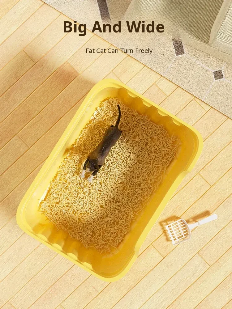 Extra Large Cat Litter Box [Mango Yellow] + Mixed Litter 2.3kg
