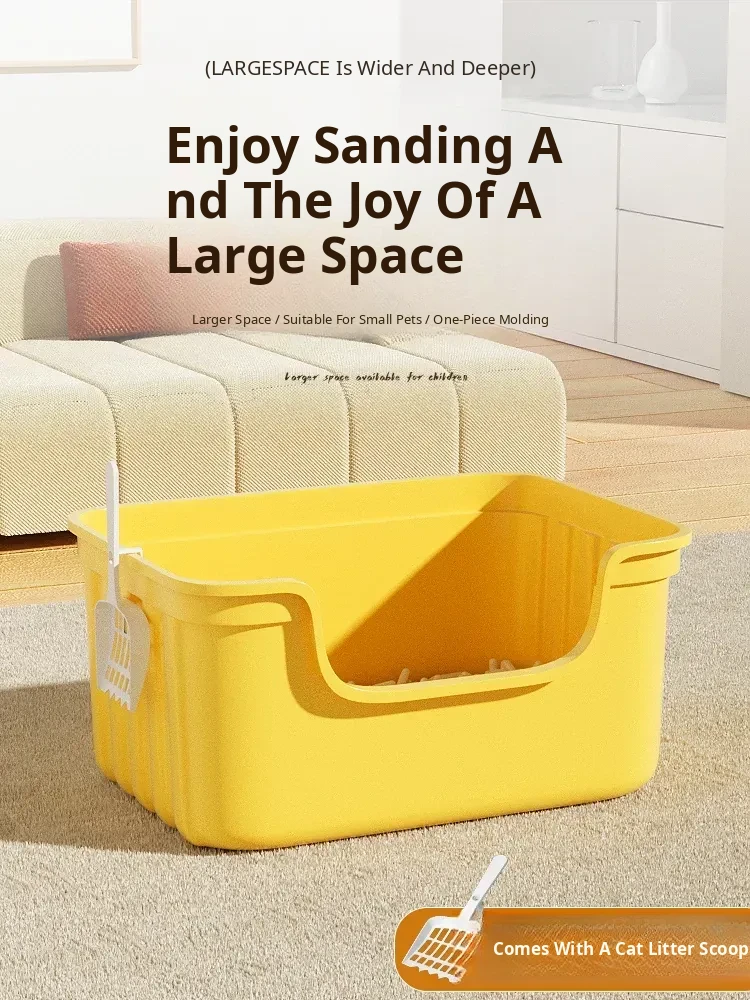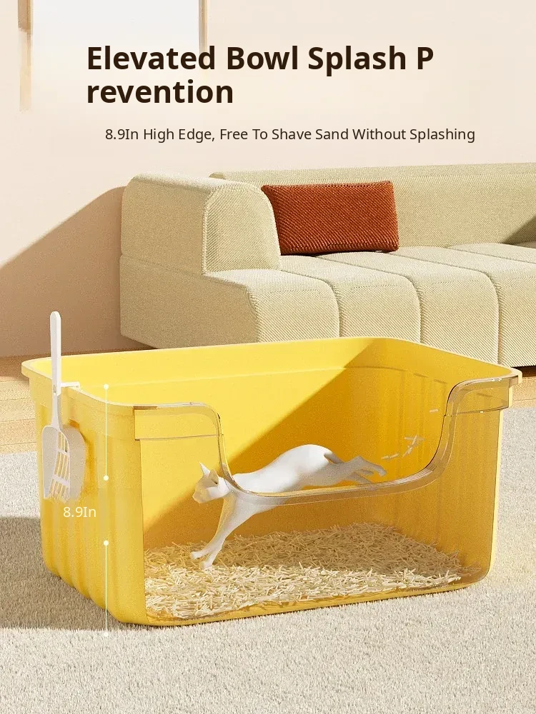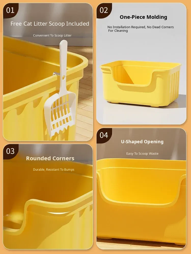 Extra Large Open-Top Cat Litter Box - Semi-Enclosed, Splash-Proof Design for Maine Coons and Other Cats - Perfect for Comfortable and Clean Bathroom Experience