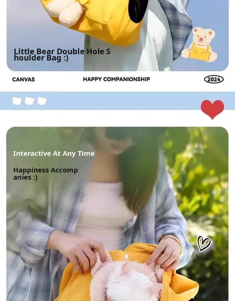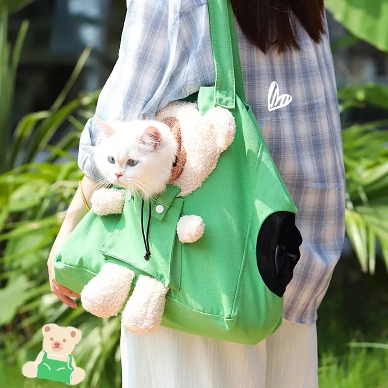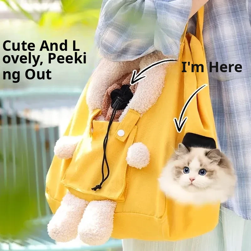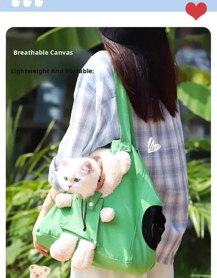 Lightweight Canvas Cat Carrier Bag - Spacious Design for Dogs, Head-Out Feature, Stress-Free Socialization Training, Summer Breathable Comfort