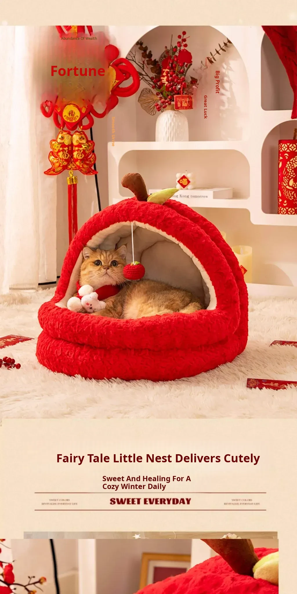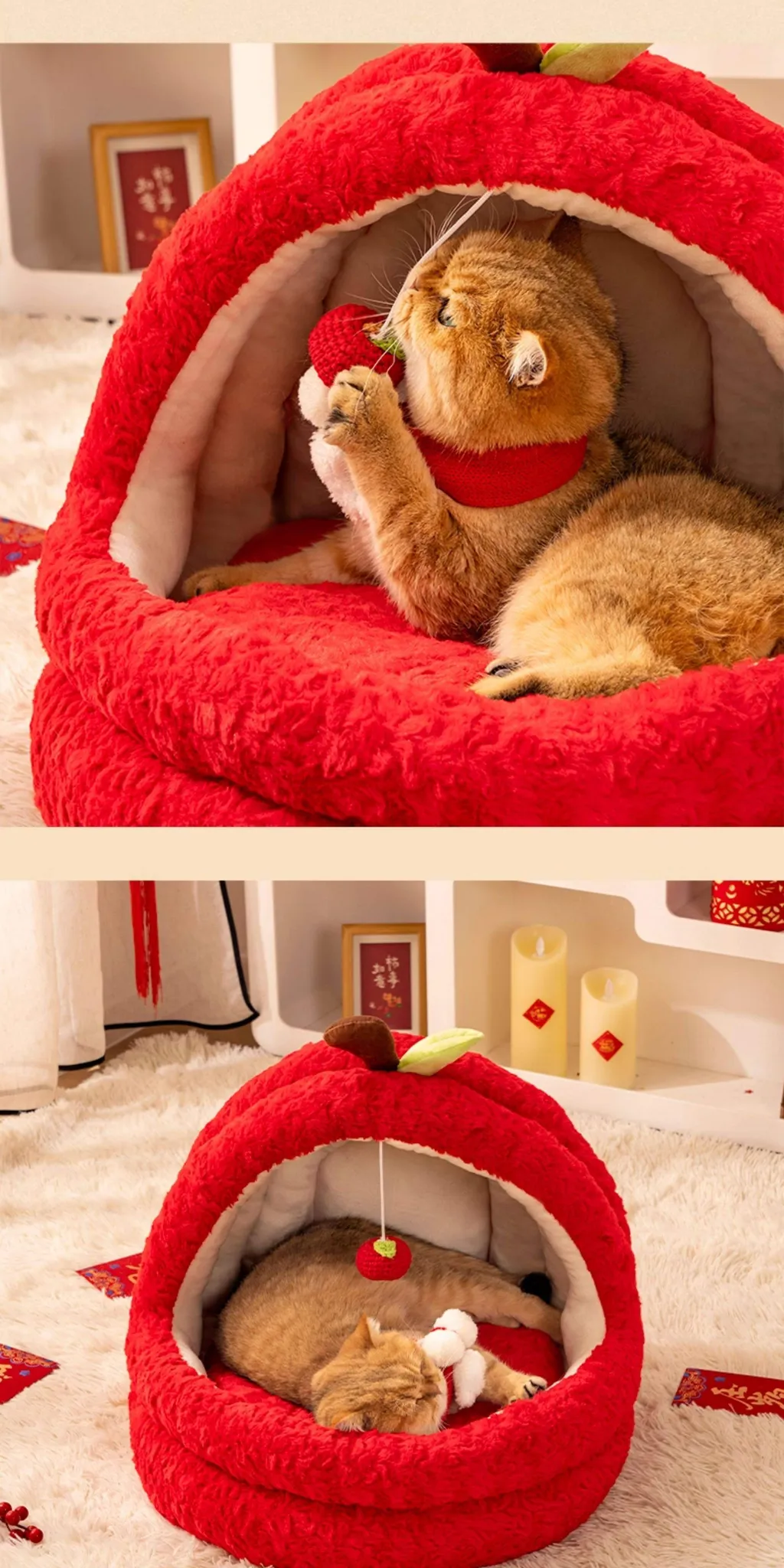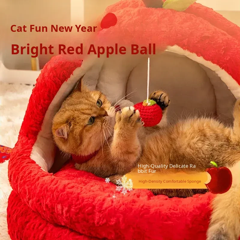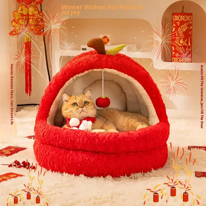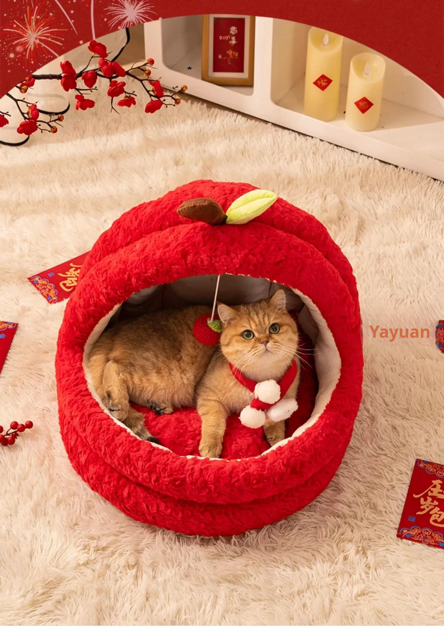 New Year Cat Bed | 2026 Winter Edition Thickened Cat Sleeping Nest - Cozy Semi-Enclosed Pet Bed for Cats to Stay Warm This Winter