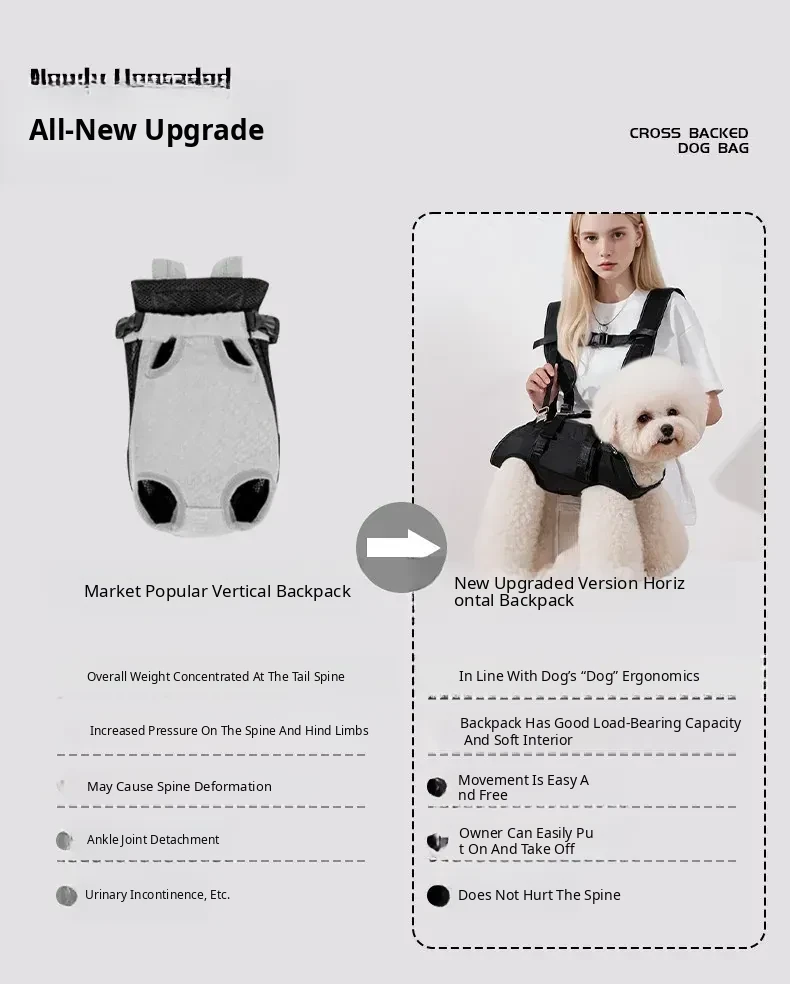 Portable Dog Backpack for Outdoor Adventures - Versatile Shoulder and Crossbody Carrier for Small to Large Dogs and Cats - Thickened Pet Tote Bag with Poison-Resistant Features