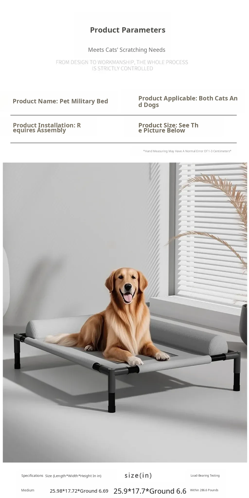 Portable Dog Camping Bed - Breathable Mesh Dog House for Golden Retrievers - All-Season Elevated Dog Bed for Medium and Small Dogs - Summer Moisture-Resistant Cat Bed
