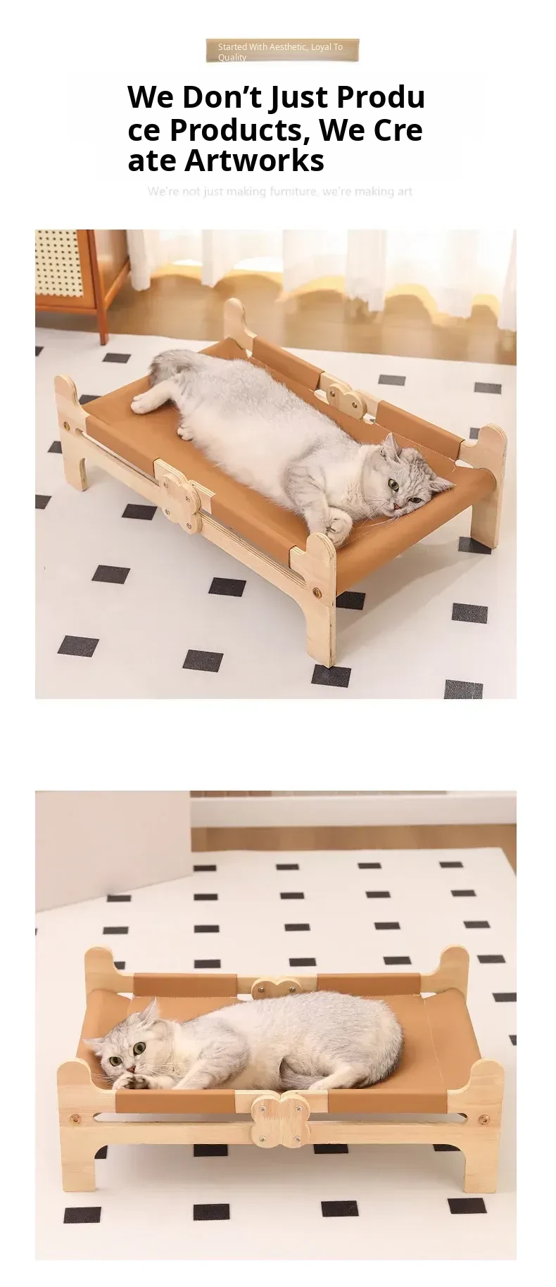 Solid Wood Cat Bed - Cozy Cat Nest and Hammock - Elevated Pet Sofa for Cats - Perfect for Kittens and Small Pets - Stylish Design for Comfort and Relaxation
