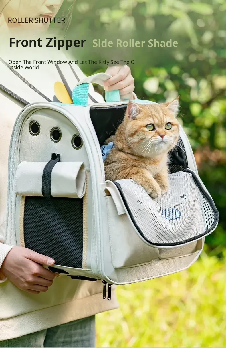 Spacious Cat Backpack Carrier - Portable, Stress-Relief Design for All Seasons, Dual Shoulder & Handheld Options, Perfect for Travel with Your Feline Friend!