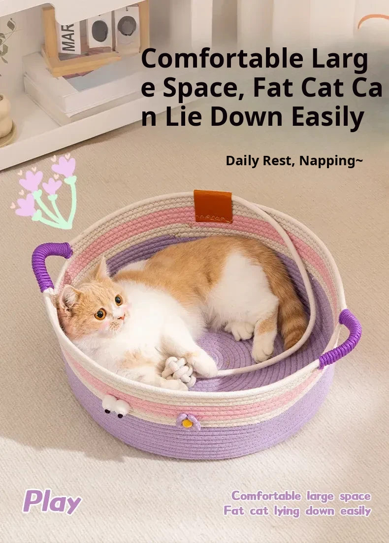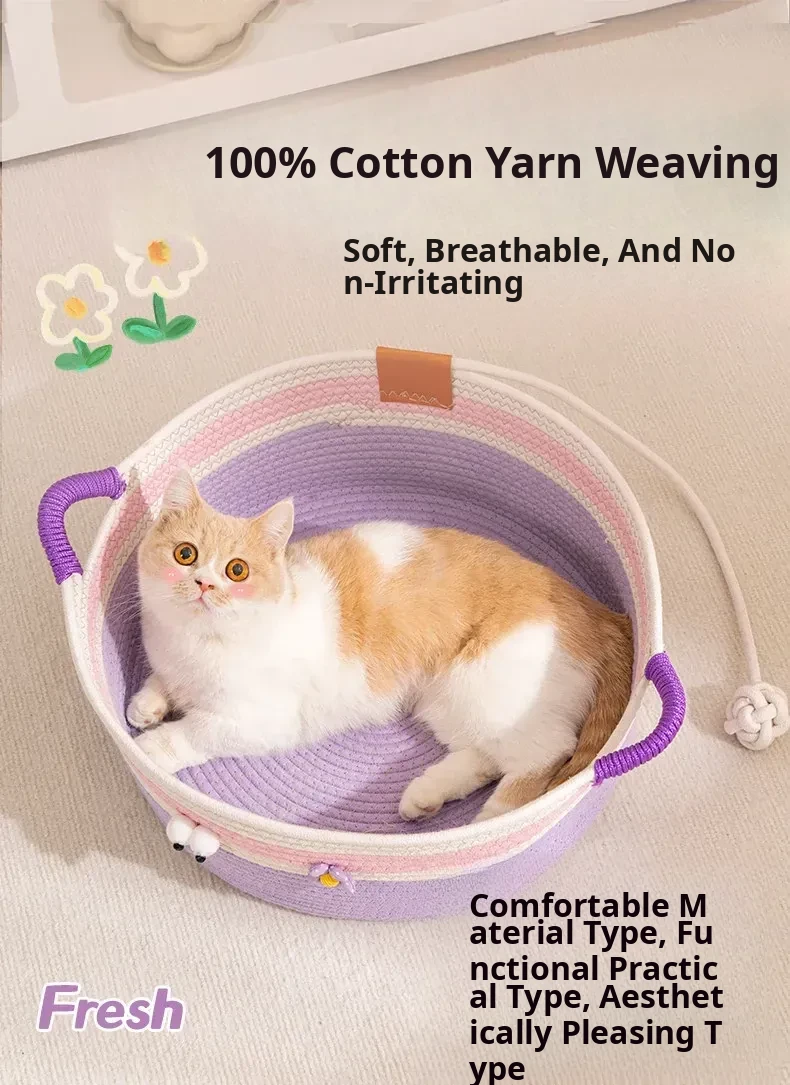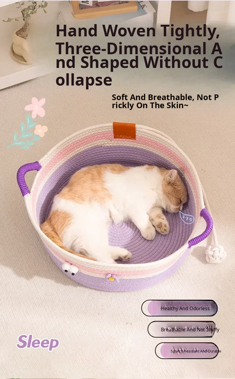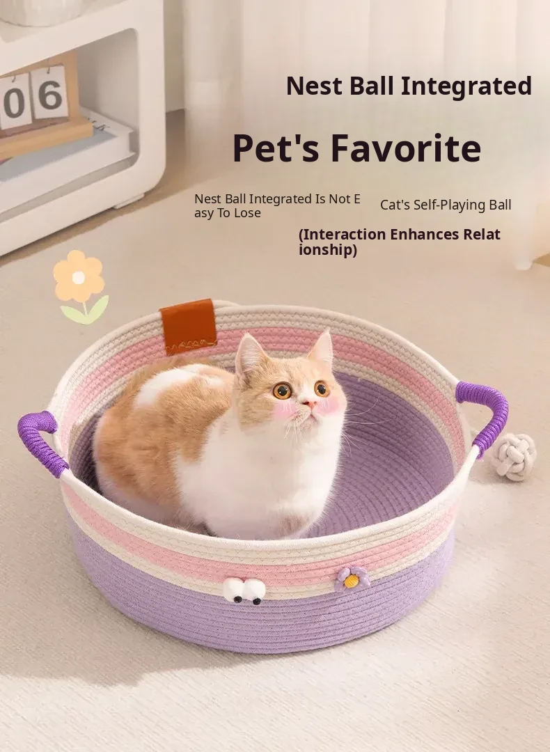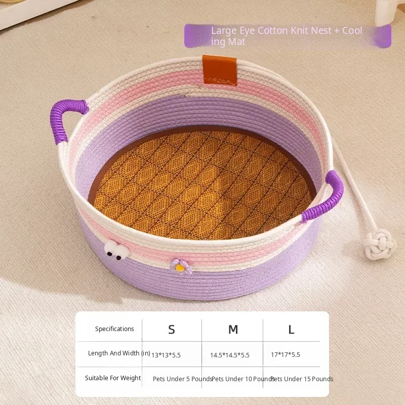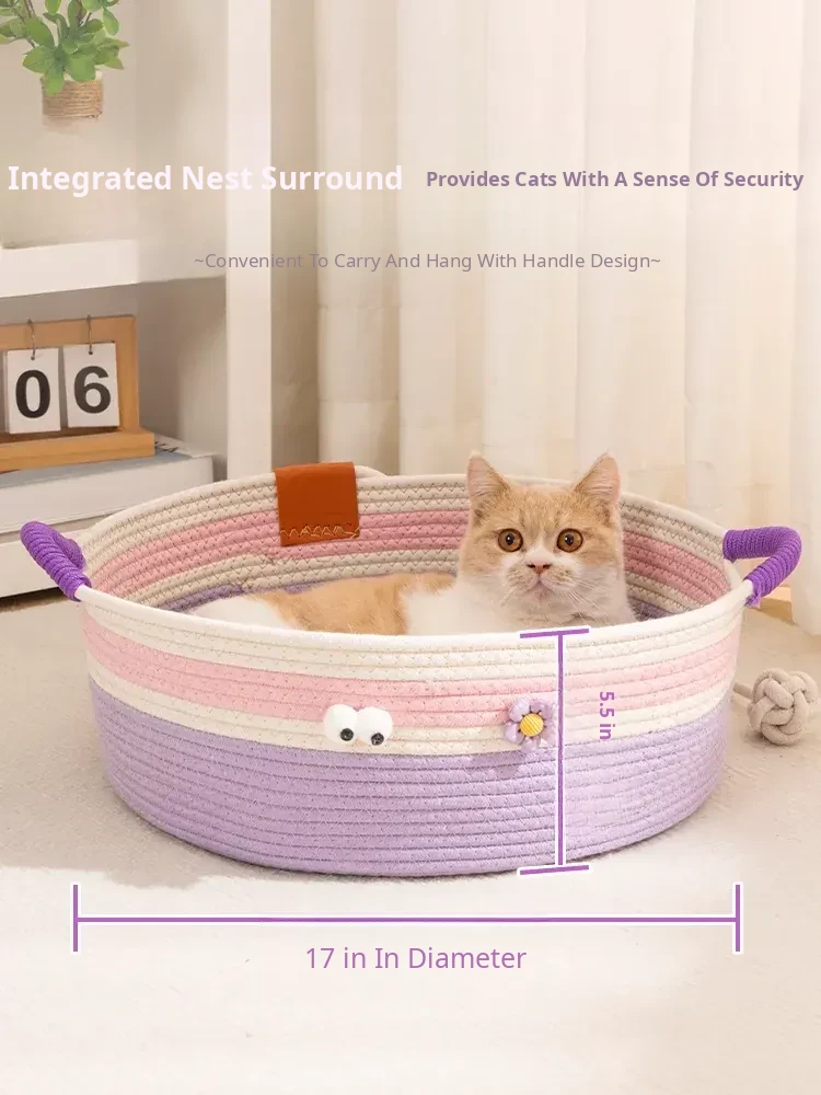 Summer Rattan Cat Bed - Stylish and Versatile Rattan Sleeping Nest for Cats, Perfect for All Seasons, Ideal Cozy Retreat for Your Feline Friend