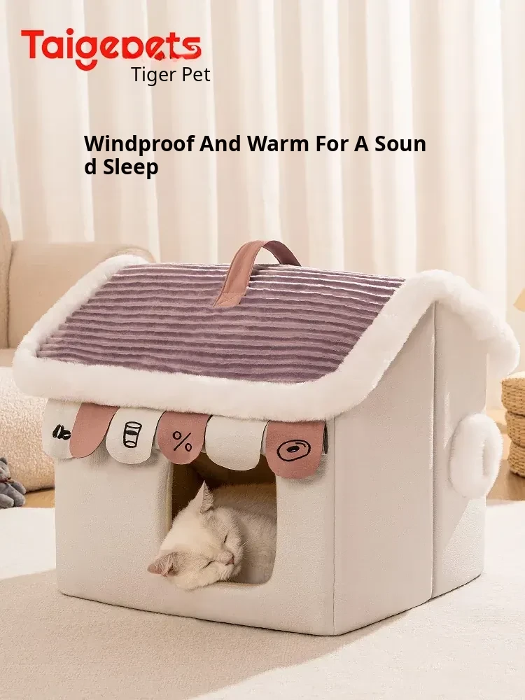 2025 New Thickened Winter Cat House - Cozy Enclosed Bed for Kittens, Provides Safety and Warmth, Removable and Washable for Easy Cleaning