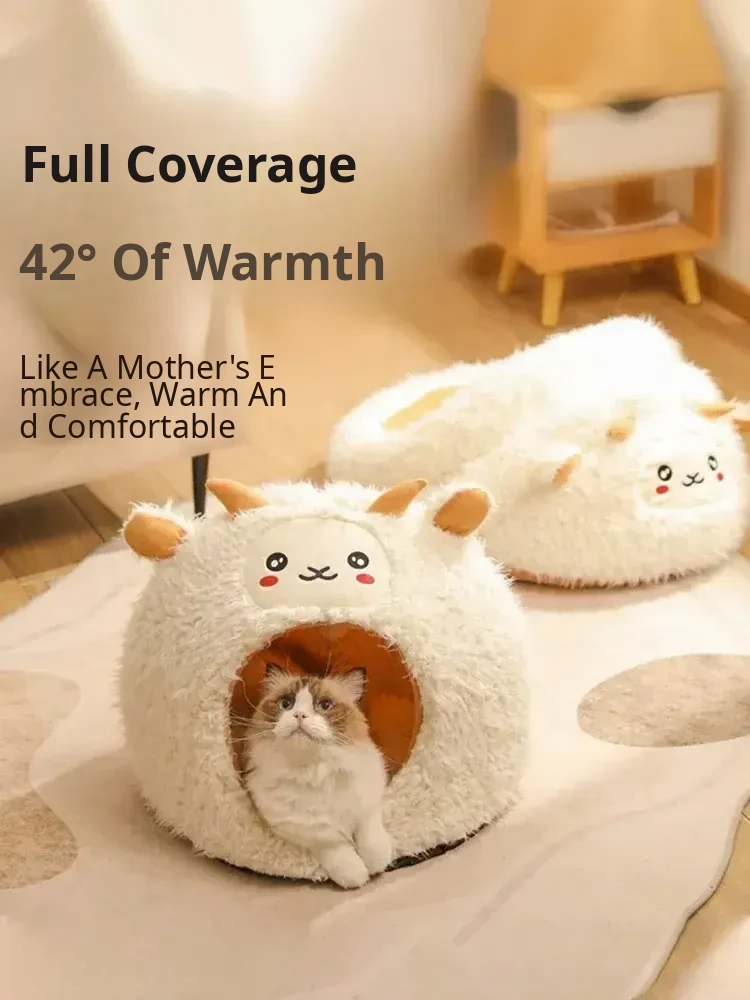 Cozy Semi-Enclosed Cat Bed for Winter - All-Season Safe Haven for Kittens and Cats - Warm and Comfortable Pet Sleeping Nest
