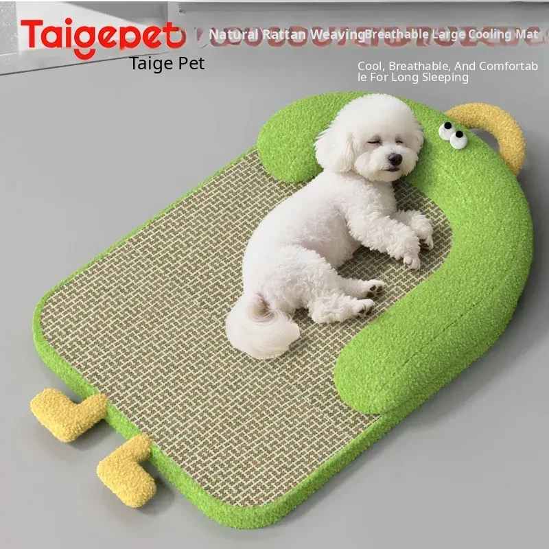All-Season Cat Bed with Removable Cooling Mat – Breathable Woven Cat Nest for Summer, Ideal for Cats and Dogs, Easy to Clean and Comfortable