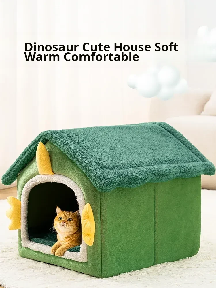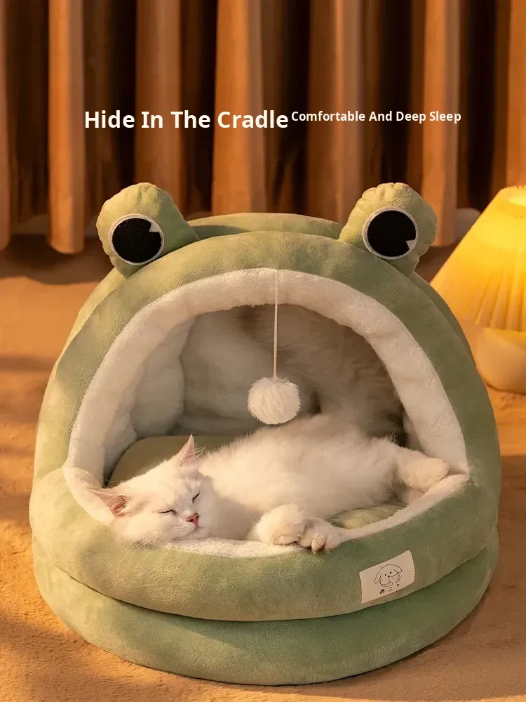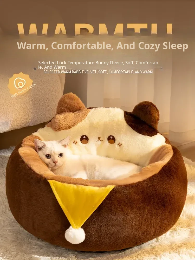 Winter-Ready Thickened Cat Bed - Semi-Enclosed, Washable & Cozy Sleeping Nest for Cats, Providing Year-Round Comfort and Security for Your Feline Friend