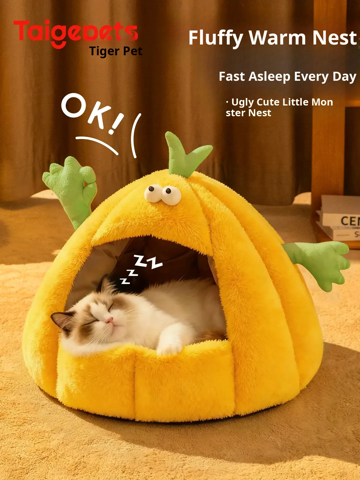 Taigepets 2025 New Cozy Monster Cat Bed - Thickened, Enclosed Design for Winter Warmth and Comfort, Perfect for a Safe and Snug Sleep!