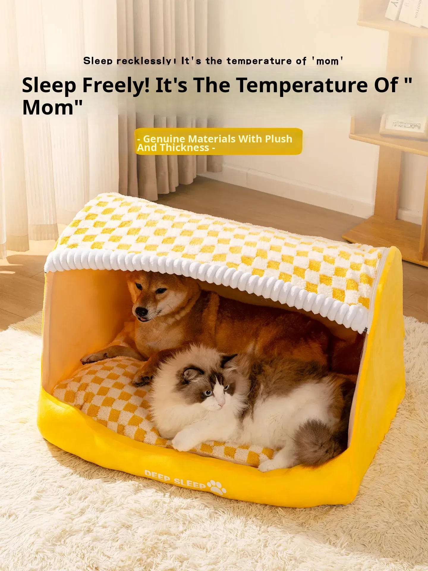 2025 Winter-Ready Thickened Cozy Dog Bed for Small Breeds - Enclosed Design for Year-Round Comfort, Washable and Safe, Perfect for Cats and Dogs!