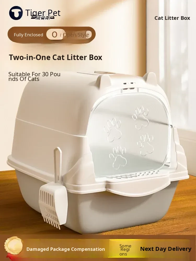 Extra Large Semi-Enclosed Odor-Proof Cat Litter Box - Ideal for Kittens, Splash-Resistant Design, Perfect for Big Cats and Easy to Clean