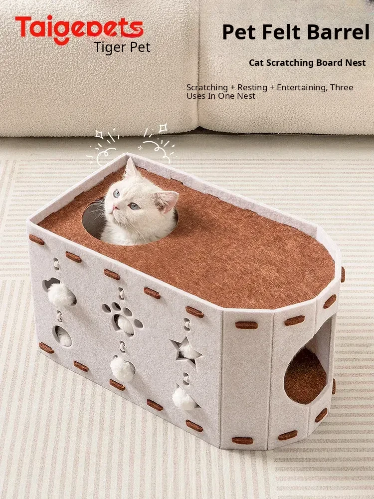 Dual-Layered Felt Cat Bed & Scratching Post - Cozy, Year-Round Cat Cave with Two Levels for Enhanced Security and Comfort for Your Feline Friend!