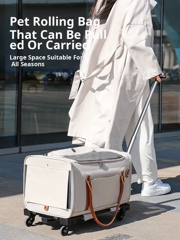 Large Capacity Pet Rolling Luggage - Stylish Cat Carrier Backpack for Travel, Perfect for Multiple Cats and Dogs, Convenient Travel Solution for Pet Owners