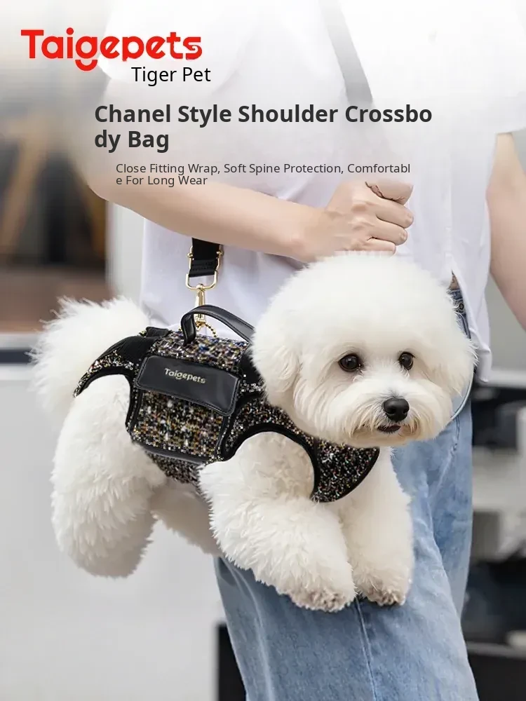 Chic Chanel Style Dog Sling Bag - Lightweight and Portable Pet Carrier for Small Dogs and Cats, Perfect for Walks and Outings, Comfortable Crossbody Design