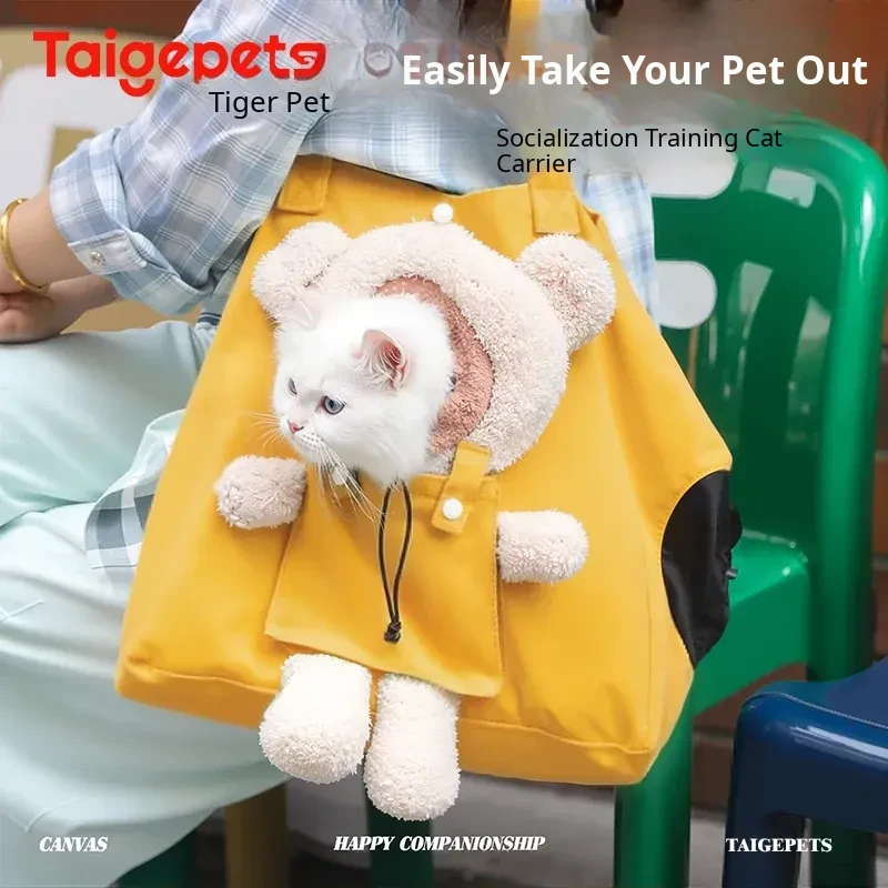 Lightweight Canvas Cat Carrier Bag - Spacious Design for Dogs, Head-Out Feature, Stress-Free Socialization Training, Summer Breathable Comfort
