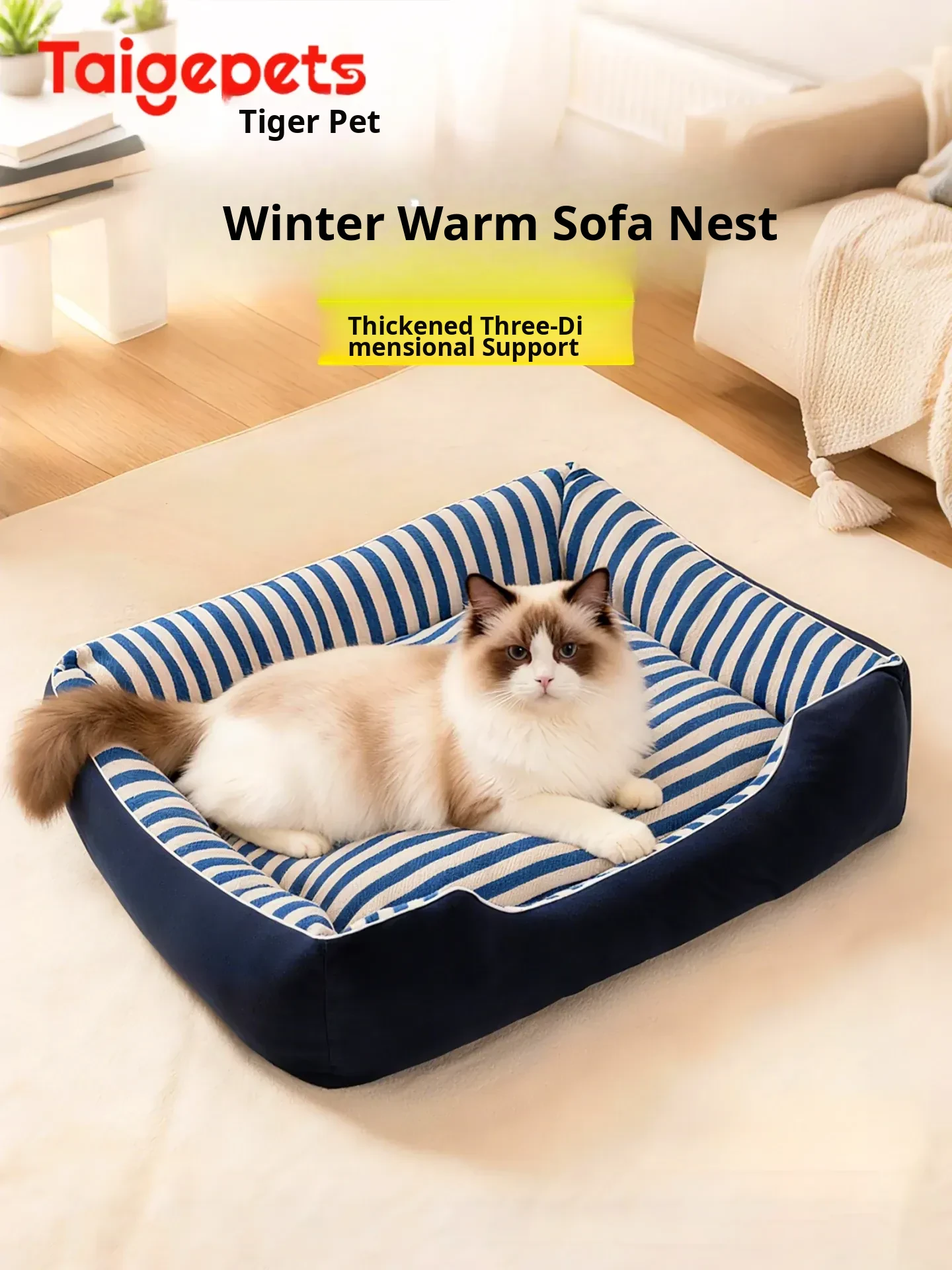 Winter-Ready Thickened Washable Semi-Enclosed Cat Bed - Cozy, Neck Supportive Pet Nest for Cats and Dogs, All-Season Comfort and Warmth
