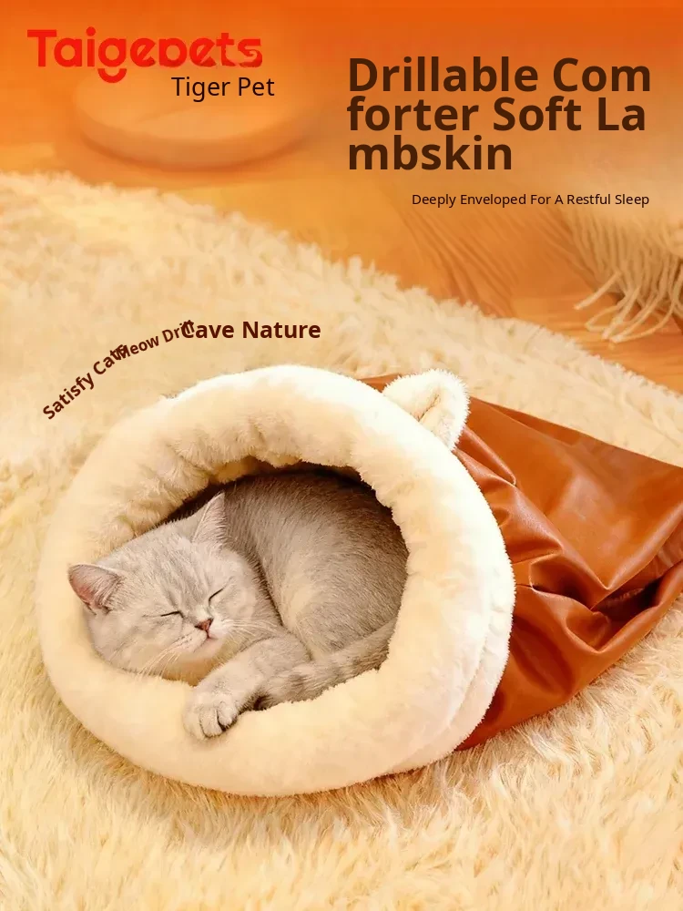 Cozy Enclosed Cat Bed for Winter - Thickened Warm Sleep Sack, All-Season Use, Safe and Secure Hideaway for Kittens, Features Tunnel and Digging Holes for Endless Fun!