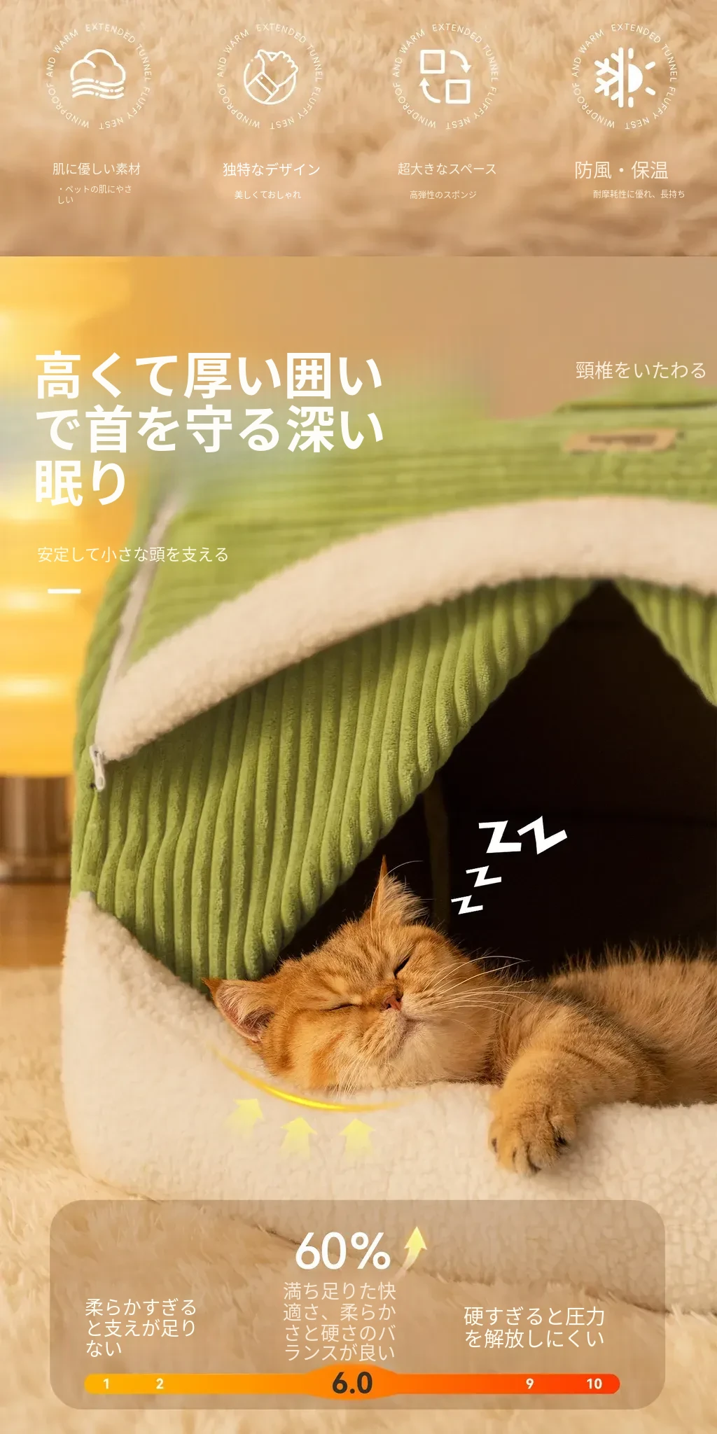 2025年新作!冬にぴったりの厚手保温キャットテント - 安心感溢れる封閉式デザイン、洗えるからいつでも清潔!寒い季節を快適に過ごすための猫ちゃんのための理想的な寝床!