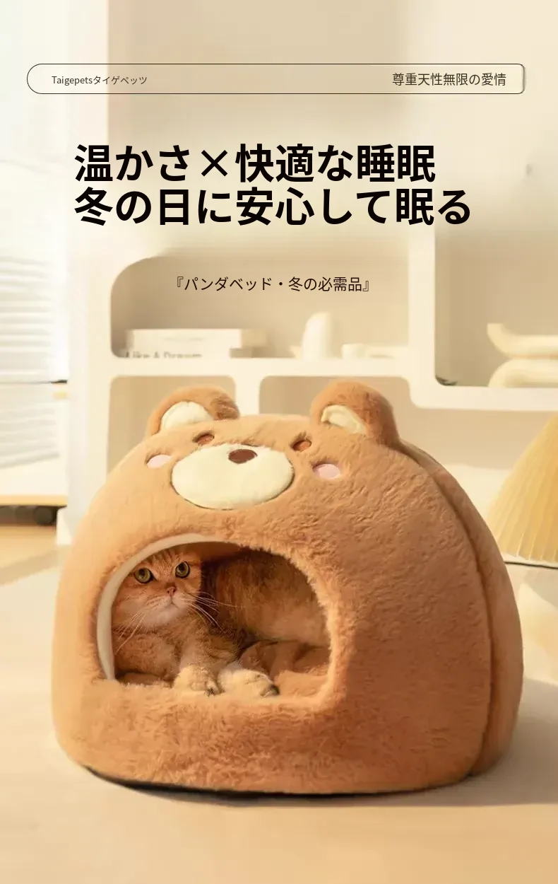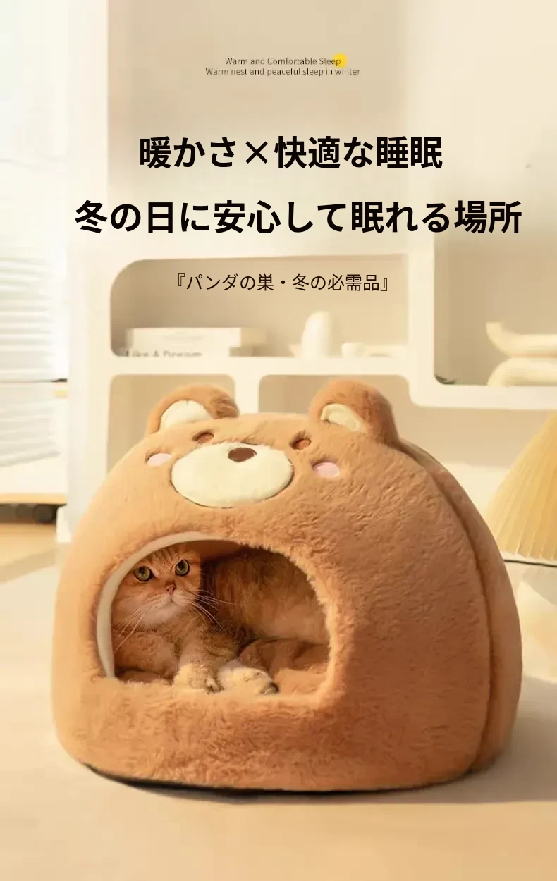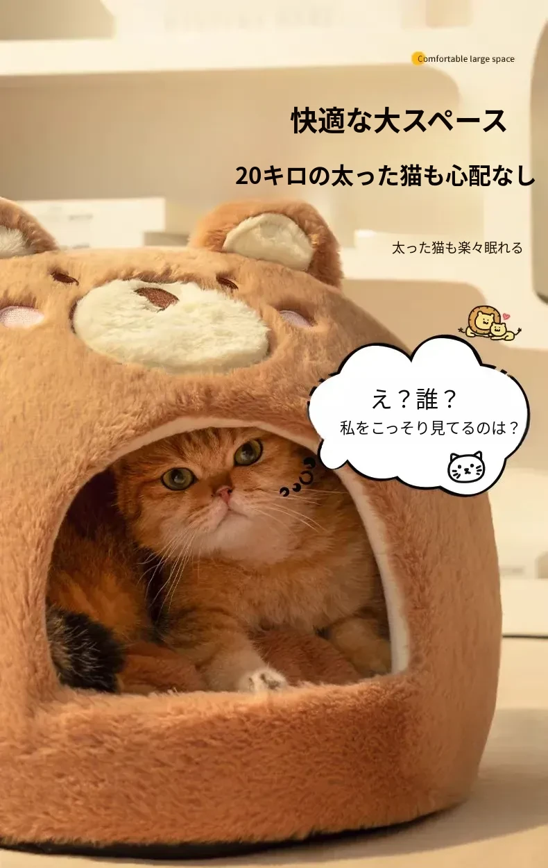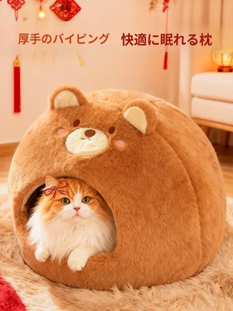 2026年新作!冬季加厚保暖の可愛い封閉式猫ベッド、四季通用の超大型丸型キャットハウス。愛猫のための快適な睡眠空間を提供します!