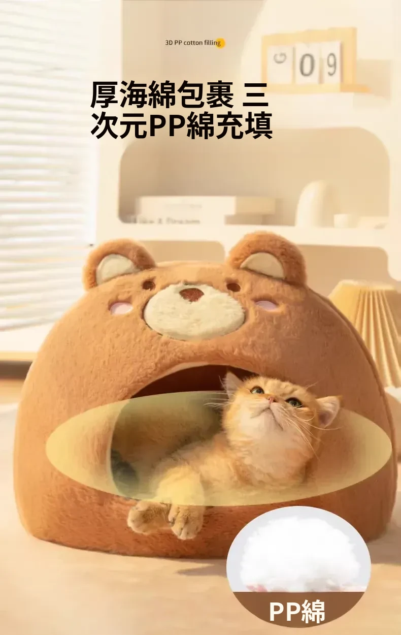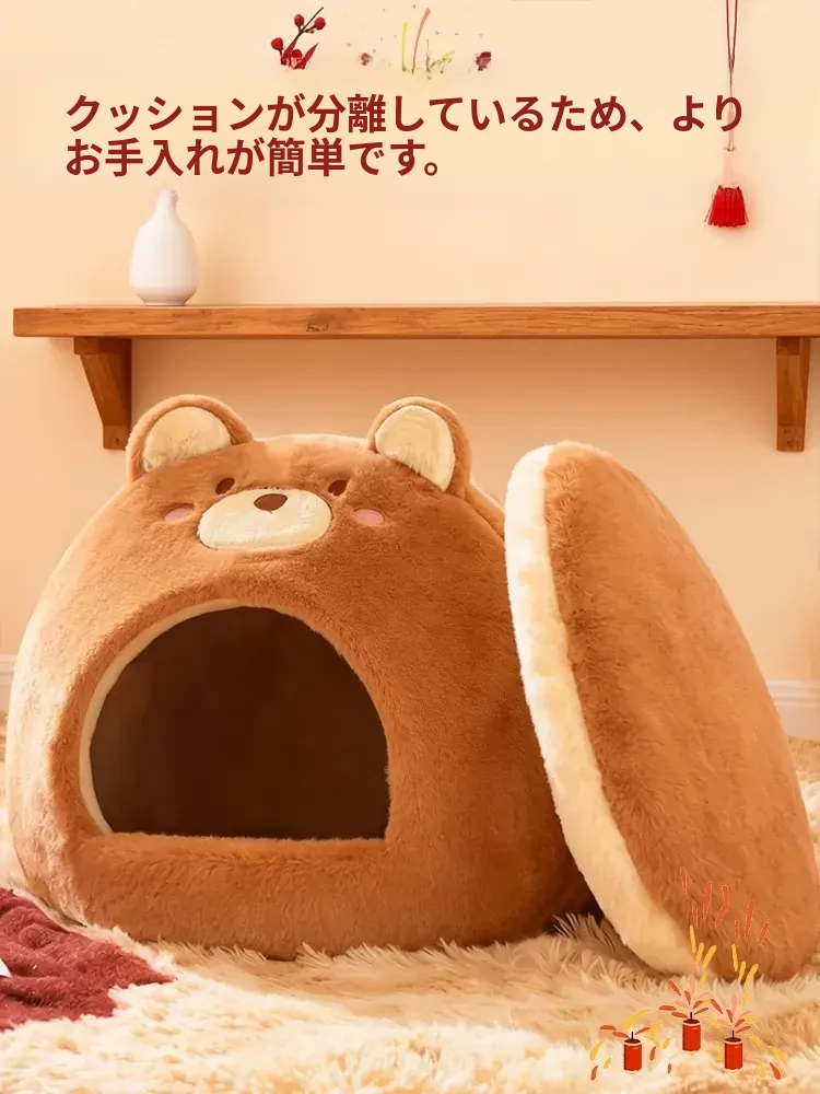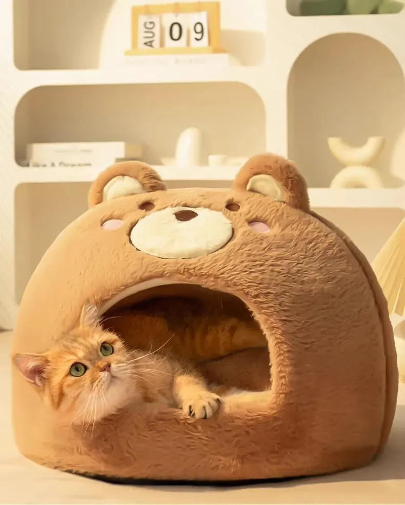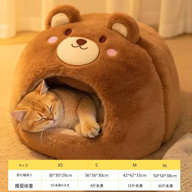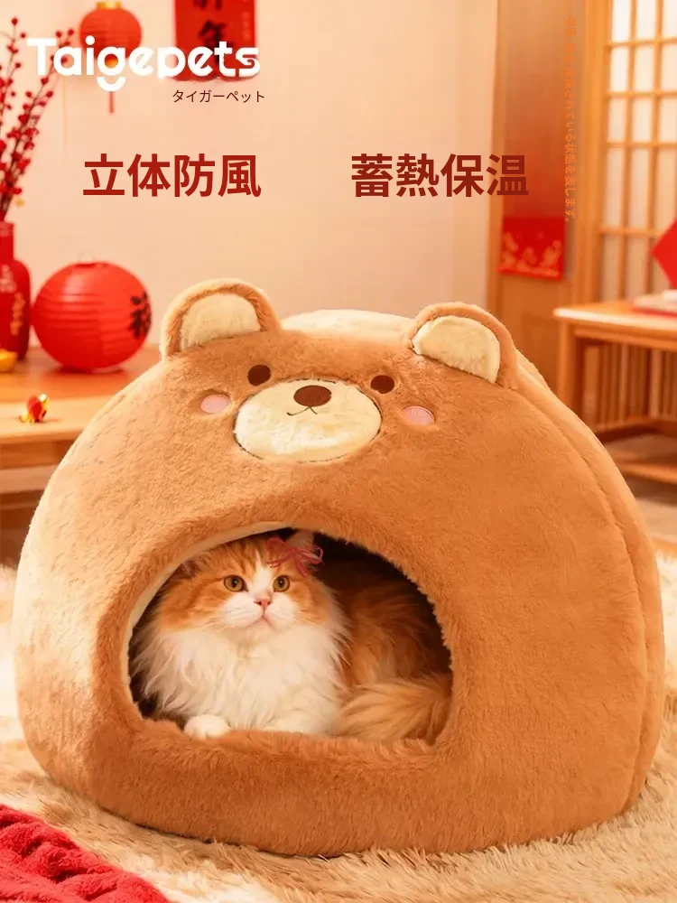 2026年新作!冬季加厚保暖の可愛い封閉式猫ベッド、四季通用の超大型丸型キャットハウス。愛猫のための快適な睡眠空間を提供します!