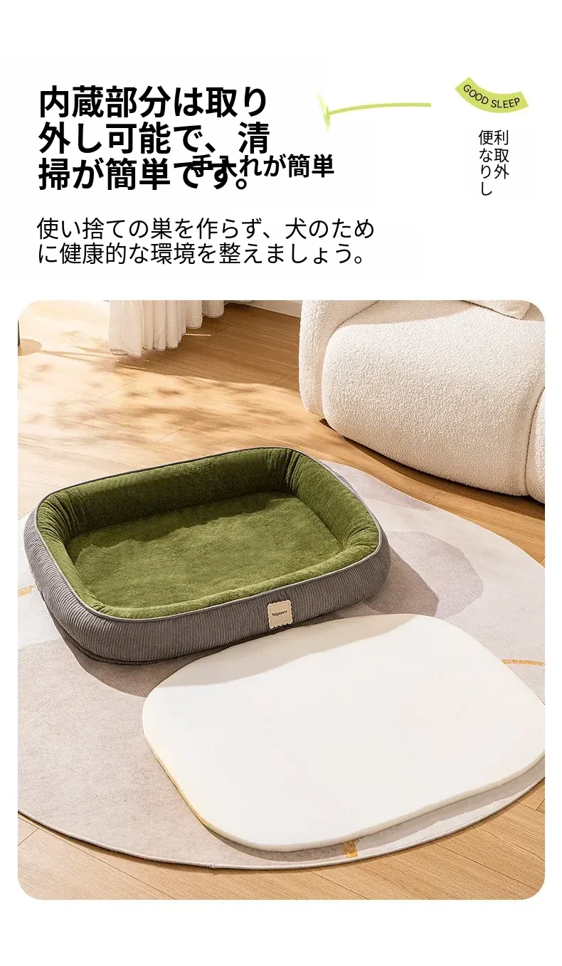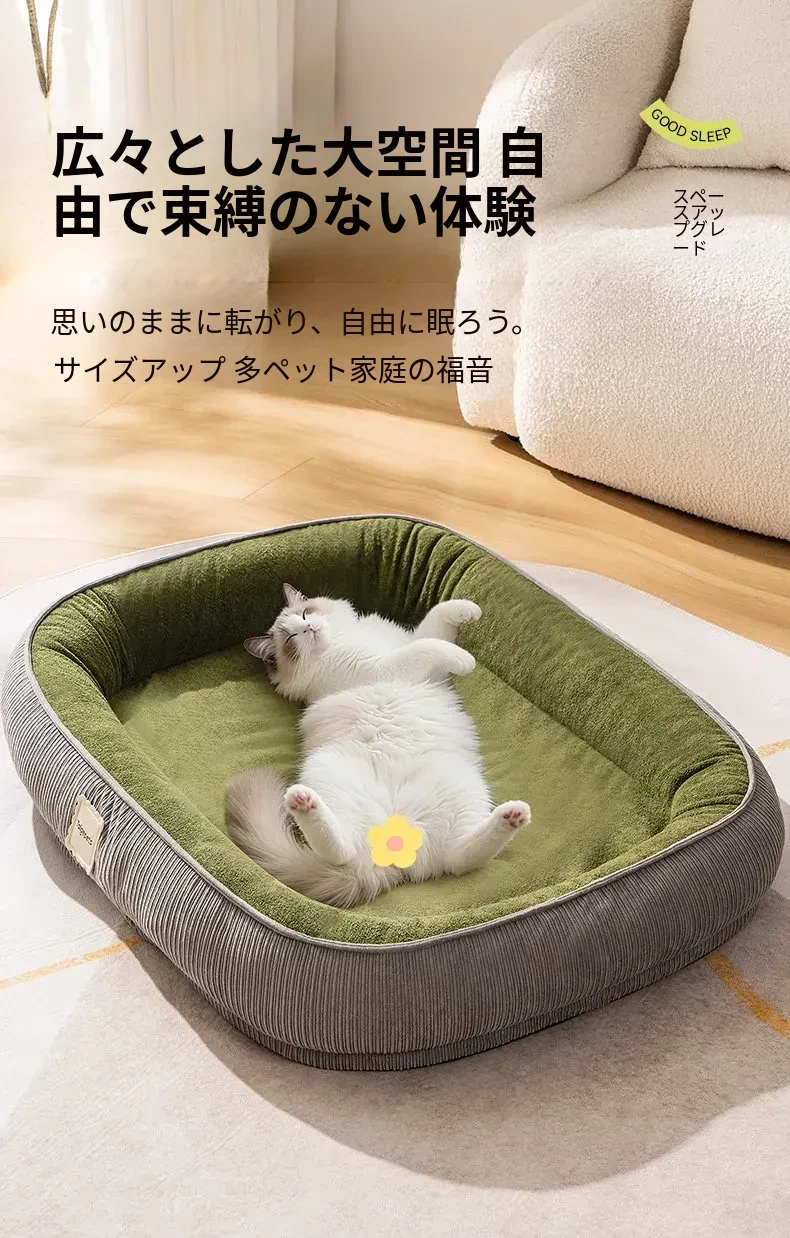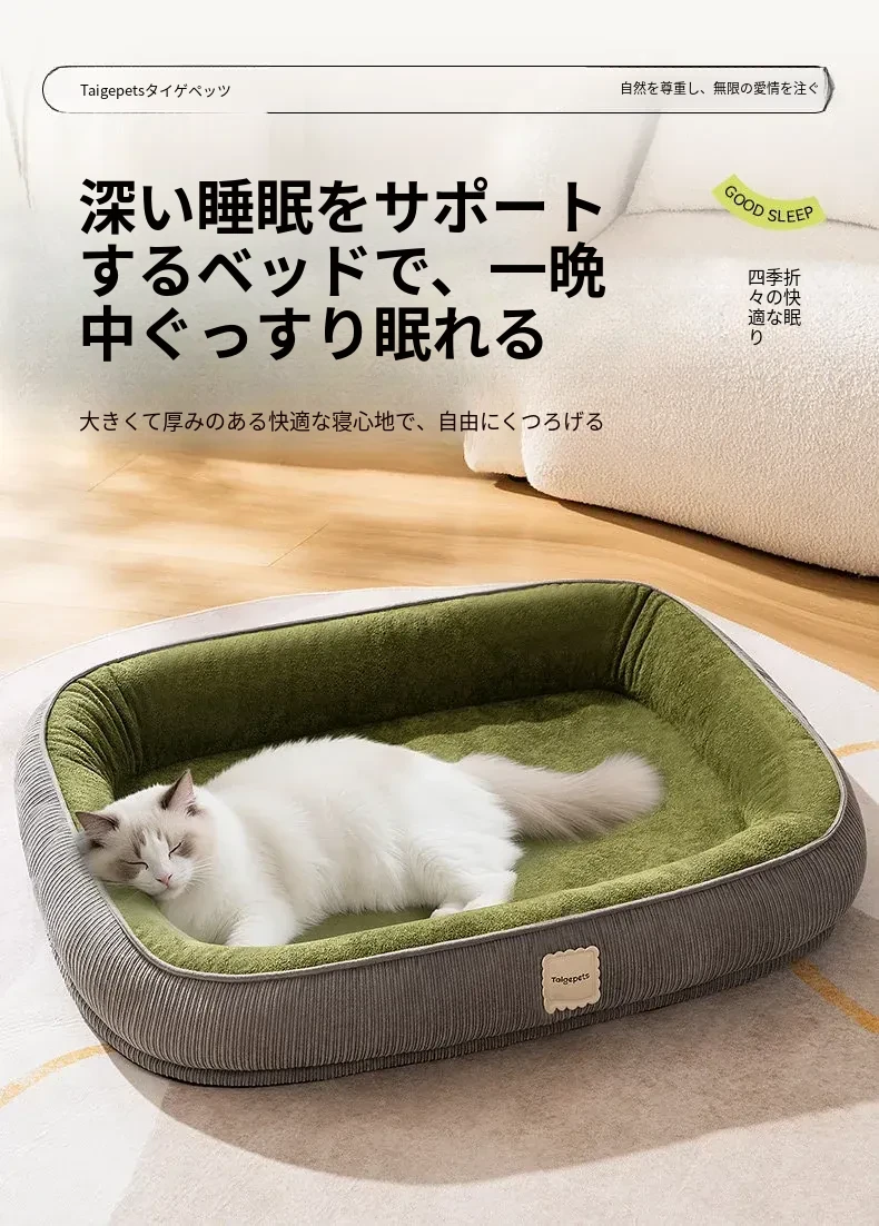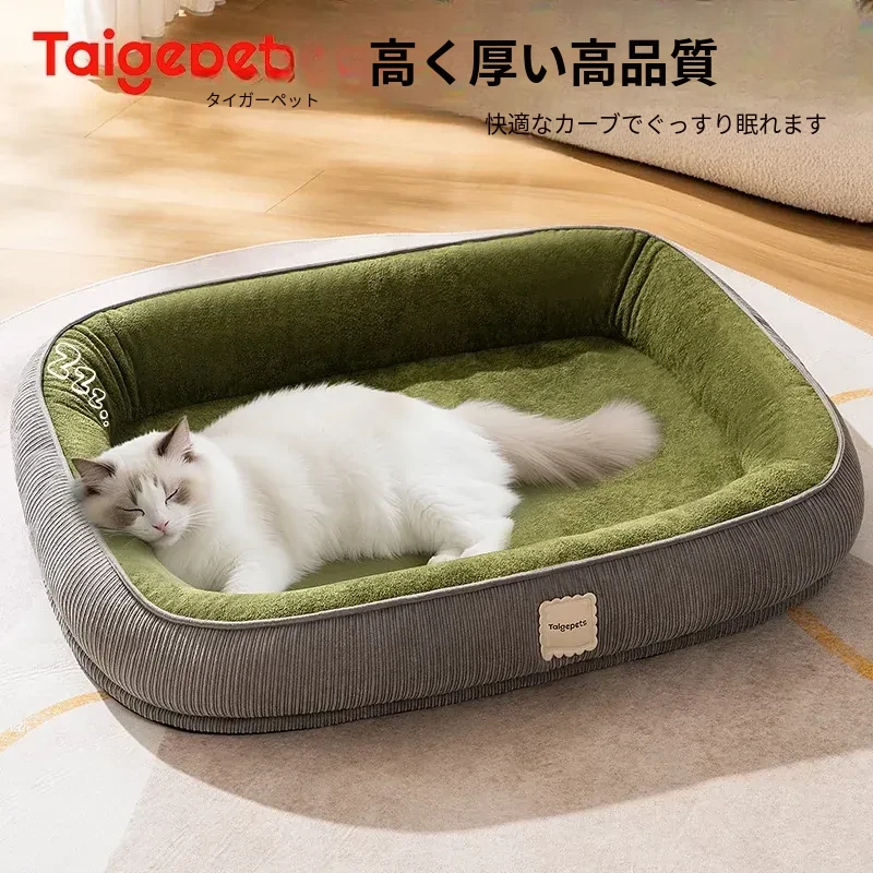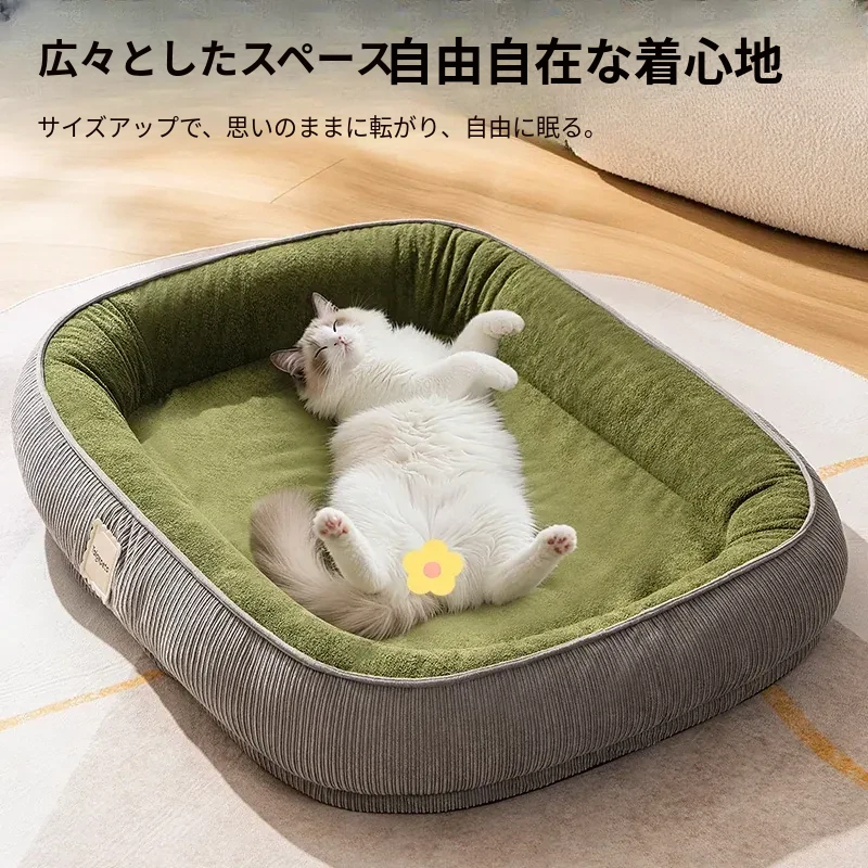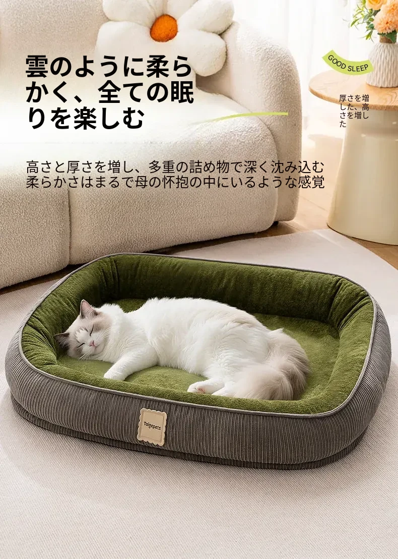 四季対応!洗える猫ベッド - 秋冬に最適な厚手の暖かいマットで、愛猫に安心感を与えます。快適な睡眠空間を提供し、愛するペットを暖かく包み込みます。